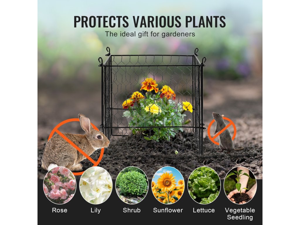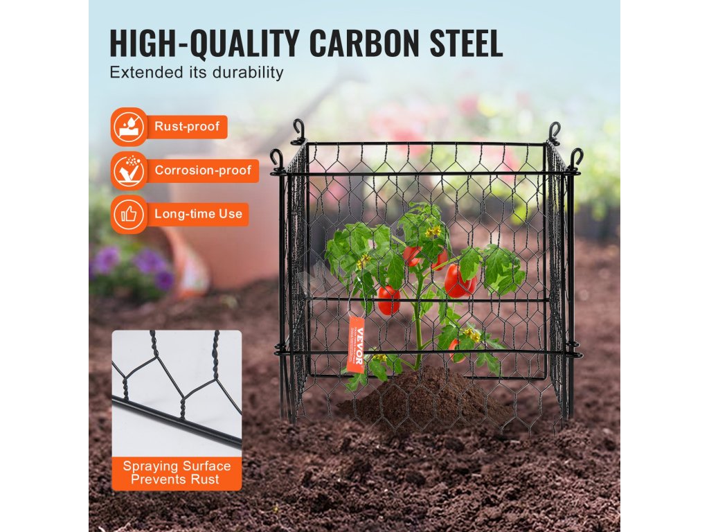 Tento chránič rostlin je vyroben z vysoce kvalitní uhlíkové oceli s práškovým nástřikem, je odolný proti korozi a má dlouhou životnost. Jeho pevná konstrukce zaručuje spolehlivost a zabrání drobným živočichům v přístupu k vašim rostlinám.