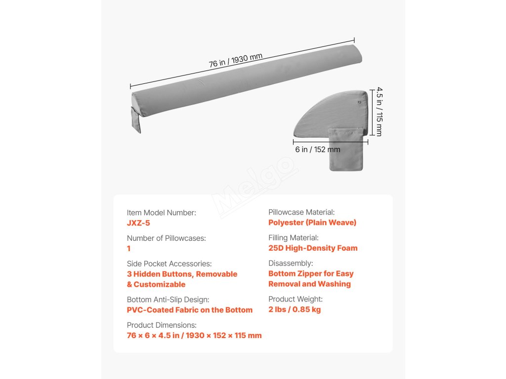 Naše výplň mezer v posteli je vyrobena z pěny o vysoké hustotě 25D, která poskytuje měkkou oporu a je prodyšná. Velká boční kapsa slouží k uložení telefonů, brýlí a dálkových ovladačů. Odnímatelný povlak na polštář se snadno čistí a protiskluzové dno udržuje polštář na místě pro pohodlný spánek.