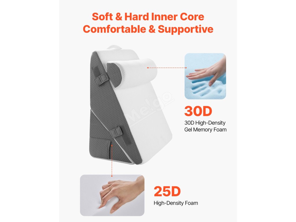 Tento klínový polštář pod čelo postele je vyroben z gelové paměťové pěny s vysokou hustotou a pomalým uvolňováním a z měkkého, prodyšného a pratelného potahu, který zajišťuje větší pohodlí a bezpečnost.