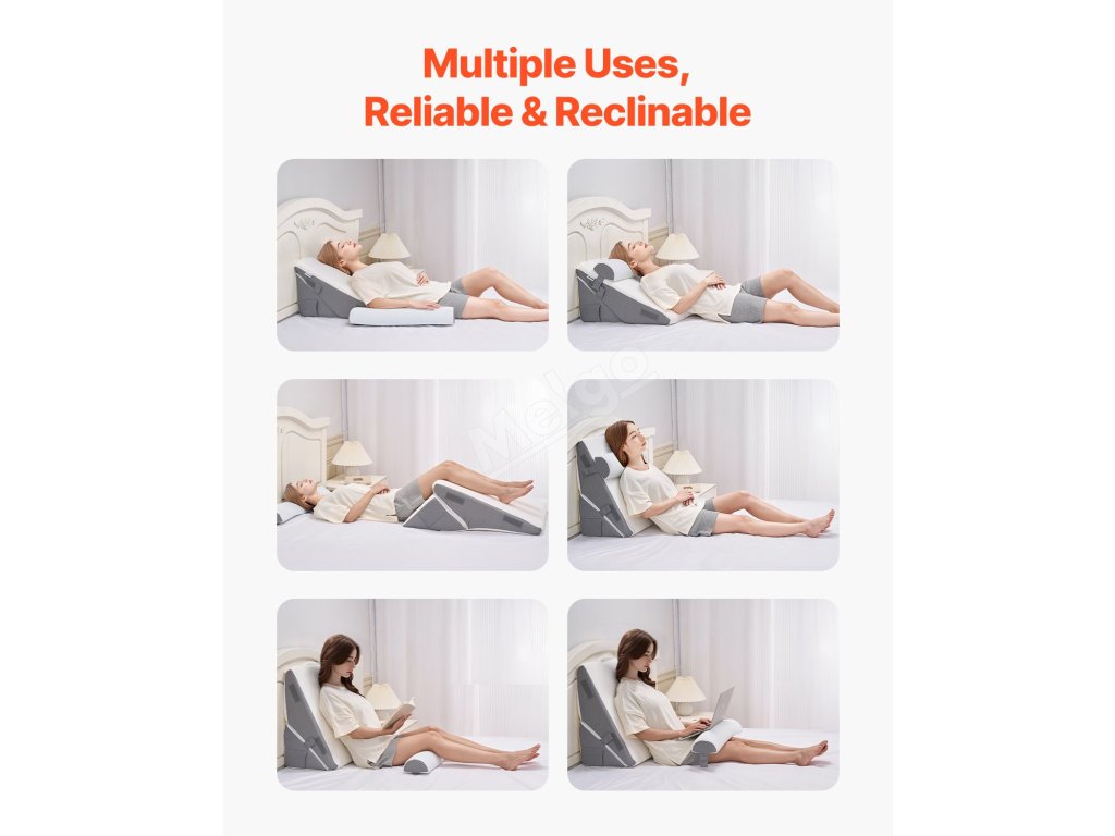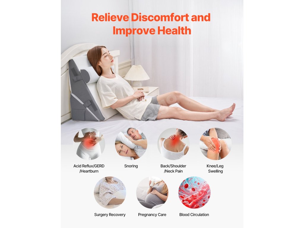 Tento klínový polštář je ideální pro spánek, čtení, sledování televize nebo používání notebooku, poskytuje pohodlnou oporu a zmírňuje tlak na záda.