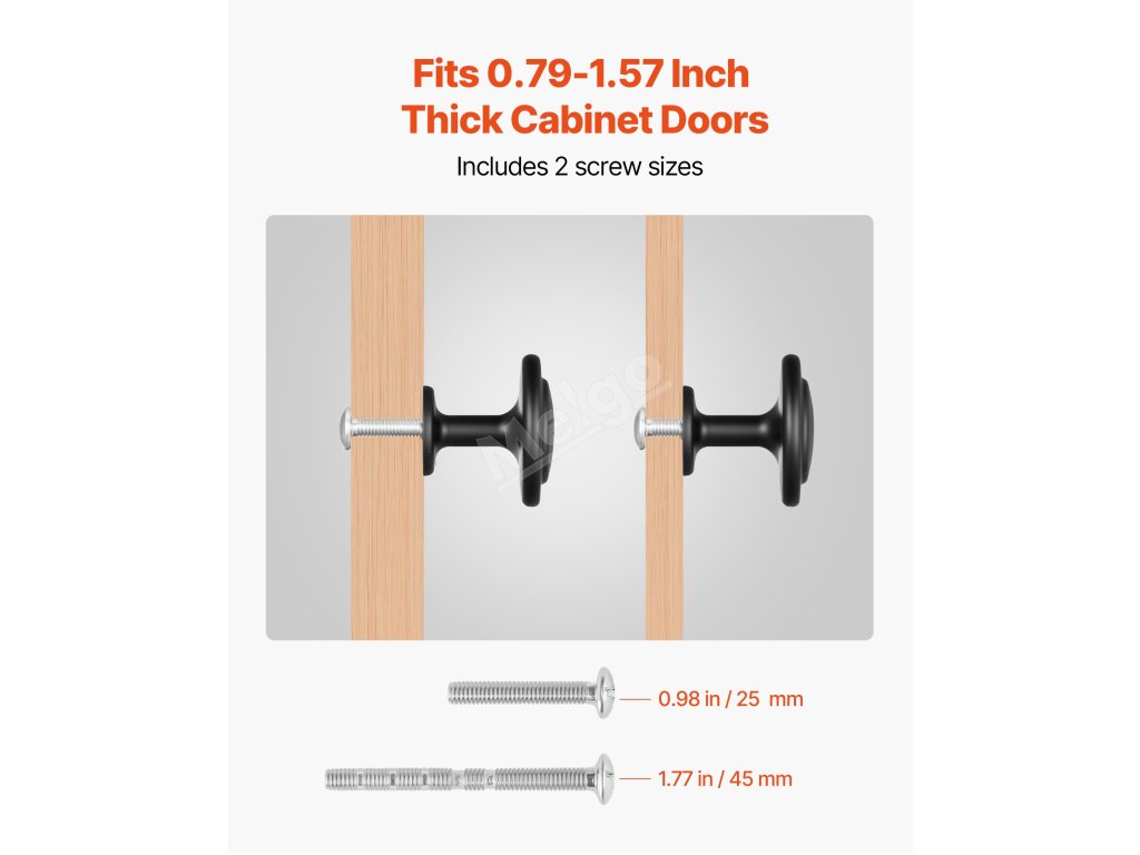 Naše knoflíky na komody obsahují dvě velikosti šroubů pro různé tloušťky skříněk. Šrouby lze nastavit podle potřeby a instalace zabere jen několik jednoduchých kroků bez nutnosti použití speciálního nářadí.