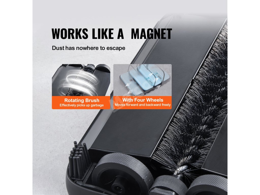 S naším ručním zametačem koberců vyčistíte bez námahy jakýkoli povrch. Nepotřebuje elektřinu ani baterie. Jeho válcový kartáč připomínající magnet bez námahy posbírá smetí a prach z koberců a rohoží. Je ideální pro domácnosti, kanceláře a další prostory a představuje dokonalé řešení pro udržení vašeho domova v bezvadném stavu