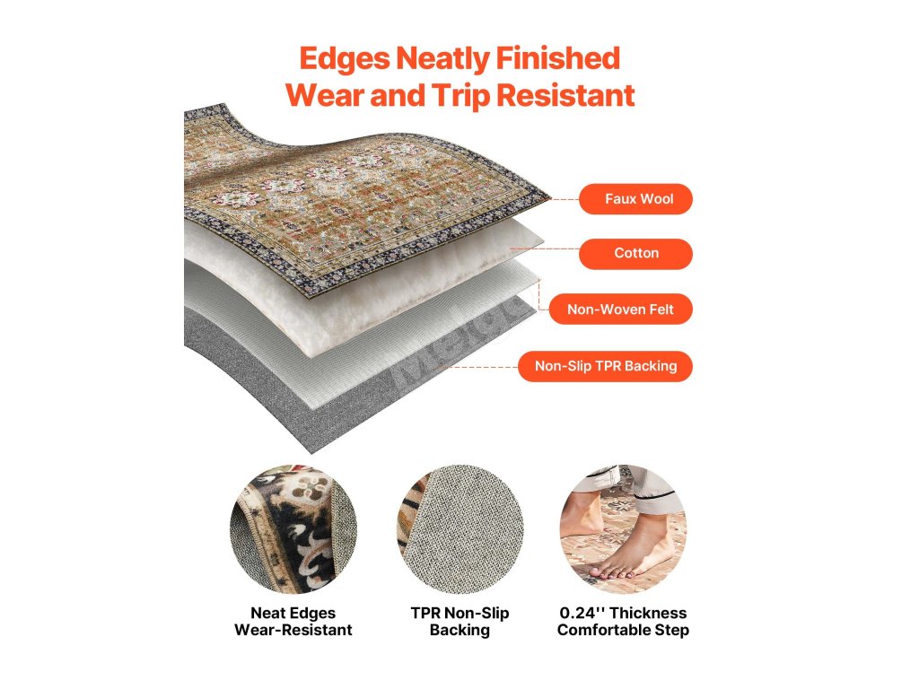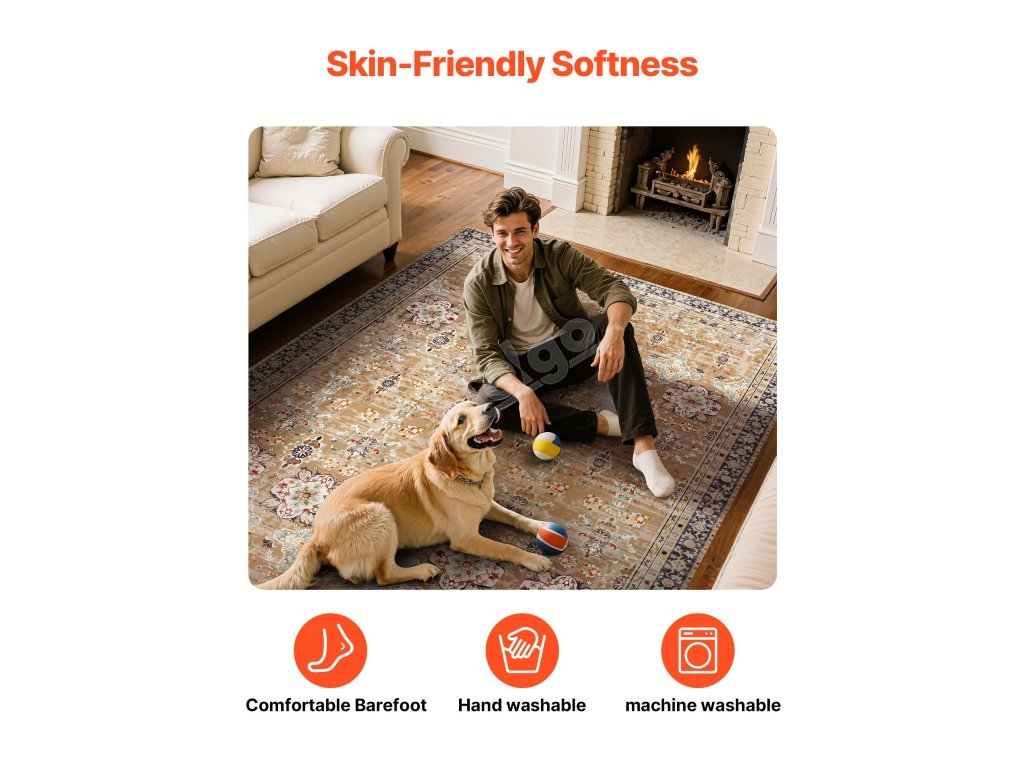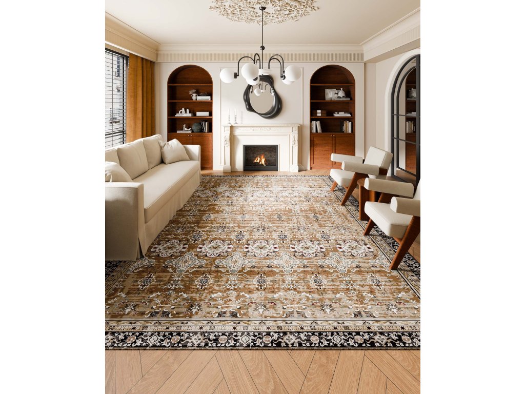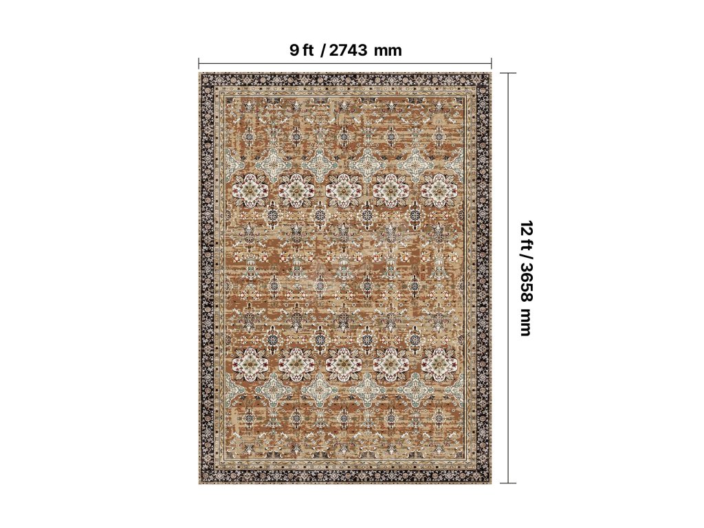 Koberec 9×12 ft omyvatelný, protiskluzový, odolný, hnědo-zelený