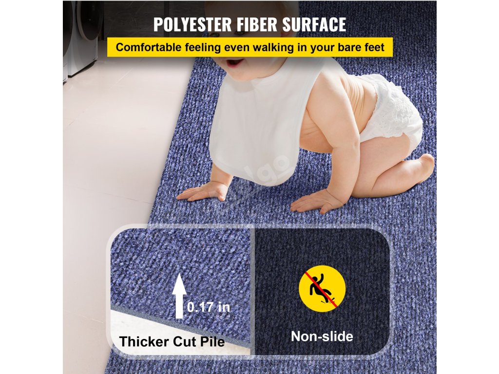 Tento venkovní běžecký koberec je vyroben ze superjemného polyesterového vlákna, které je odolné proti UV záření a plísním, což prodlužuje jeho životnost.
