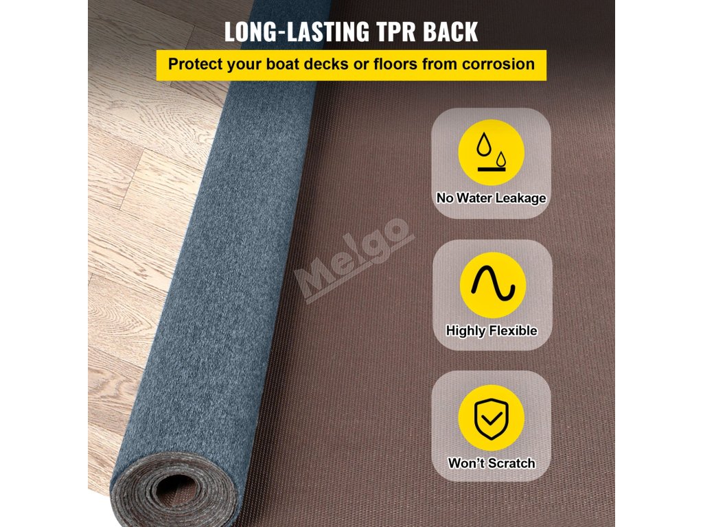 Koberec na loď je vyroben z polyesterového vlákna profesionální kvality, které zaručuje měkký pocit a dlouhou životnost.