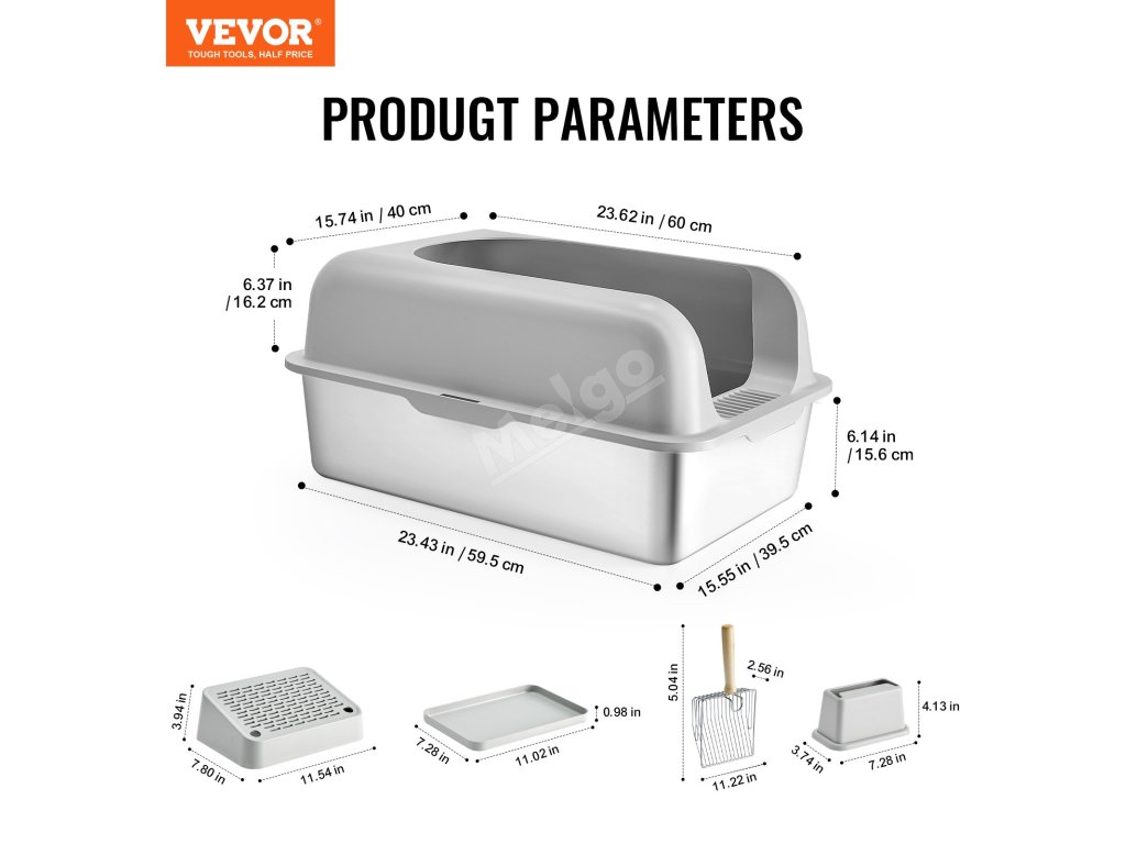 Rozlučte se se špinavýma rukama a užijte si pohodlnější úklid. Box na kočičí stelivo včetně kovové lopatky má rozměry 10,83 x 5,63 x 2,17 palce (275 x 143 x 55 mm), prodlouženou rukojeť a stojan pro snadné skladování. Čištění kočičího steliva se tak stává snadným.