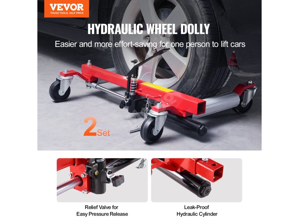 Hydraulický zvedací systém nabízí plynulé a snadné zvedání s jednoduchým ovládáním, ideální pro rychlé nastavení výšky vozidla. Tato sada vozíku pro vozidla zaručuje bezpečnost i stabilitu při zvedání.