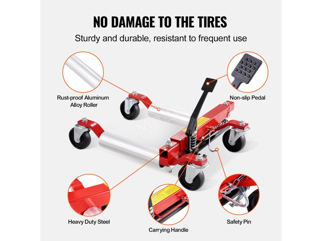 Naše zvedáky kol pro automobily jsou vybaveny 4palcovými univerzálními koly pro snadný pohyb vozidla v jakémkoli směru. Snižte pracnost a zabraňte nechtěnému pohybu. Požadovanou polohu zajistíte pouhým stisknutím nožní brzdy.