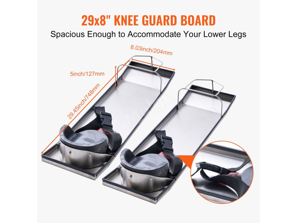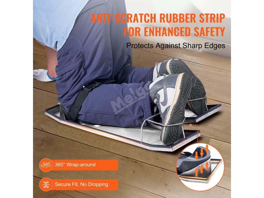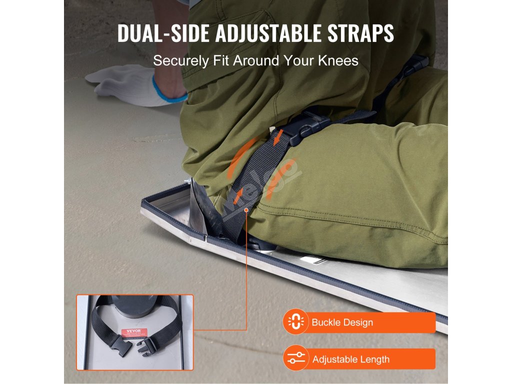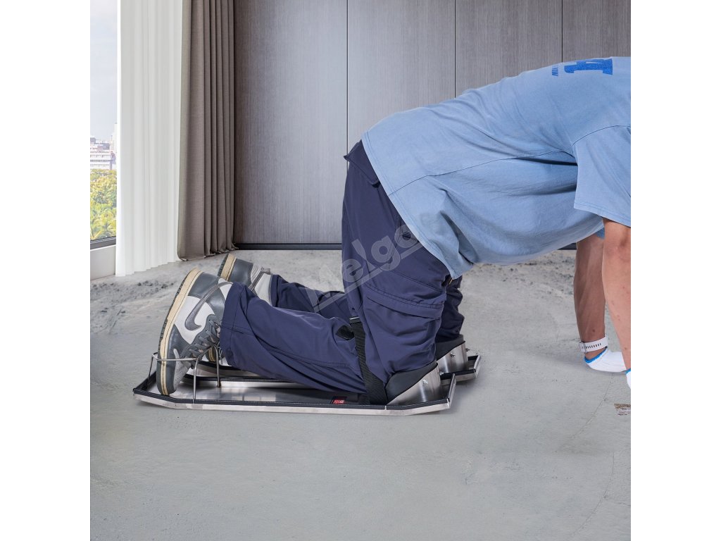 Kolenní deska na beton nerezová 30×8" s chrániči a popruhy