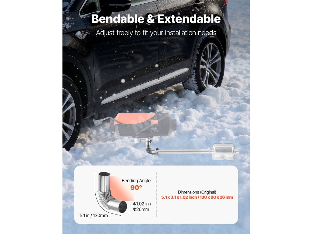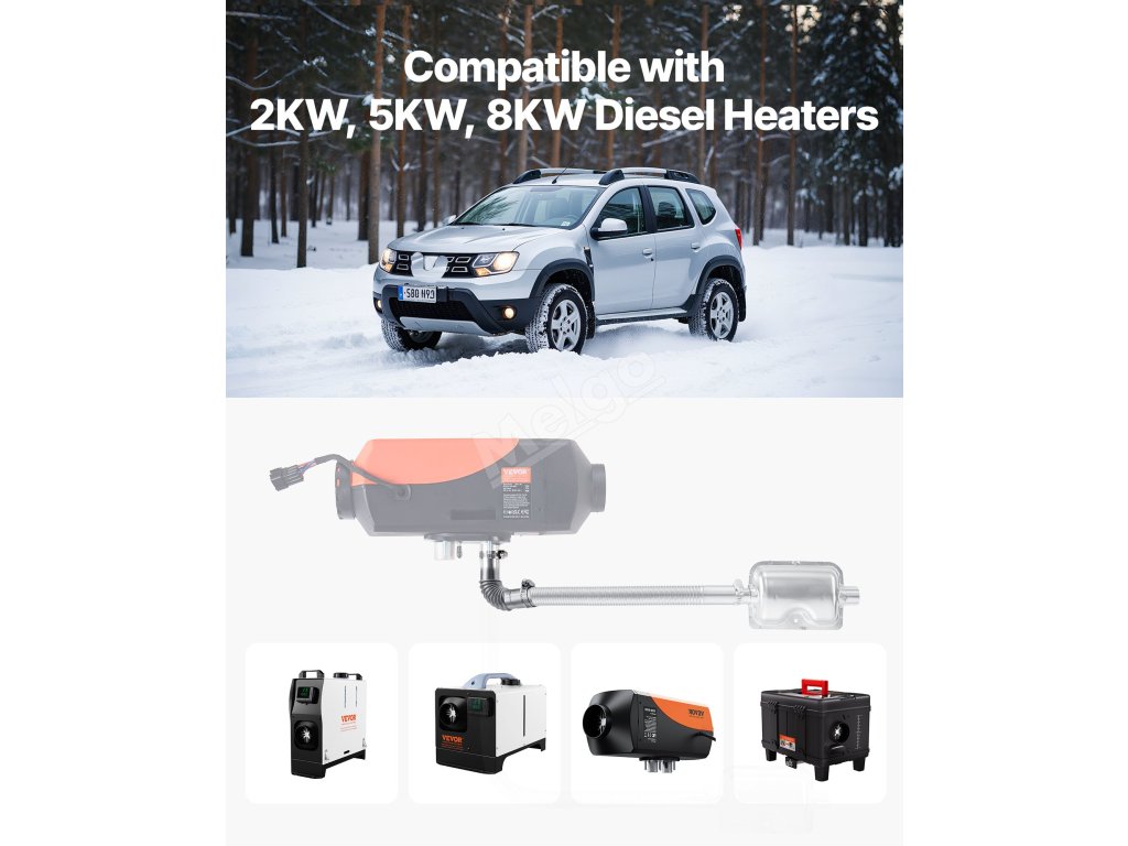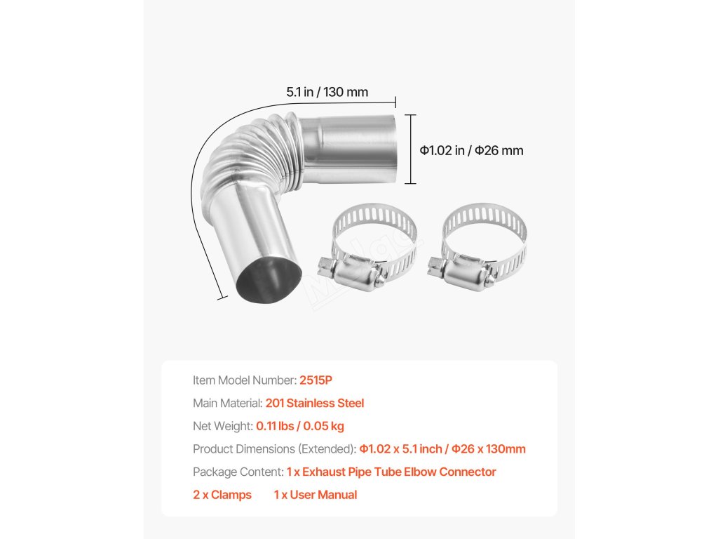 Tato spojka výfukového potrubí o průměru 0,98 palce/25 mm je určena pro naftové topení a je vyrobena z vysoce kvalitní nerezové oceli pro dlouhou životnost. Vyznačuje se silnou odolností proti povětrnostním vlivům, nerezaví a je vhodná pro většinu 2KW, 5KW a 8KW topidel se snadnou instalací.