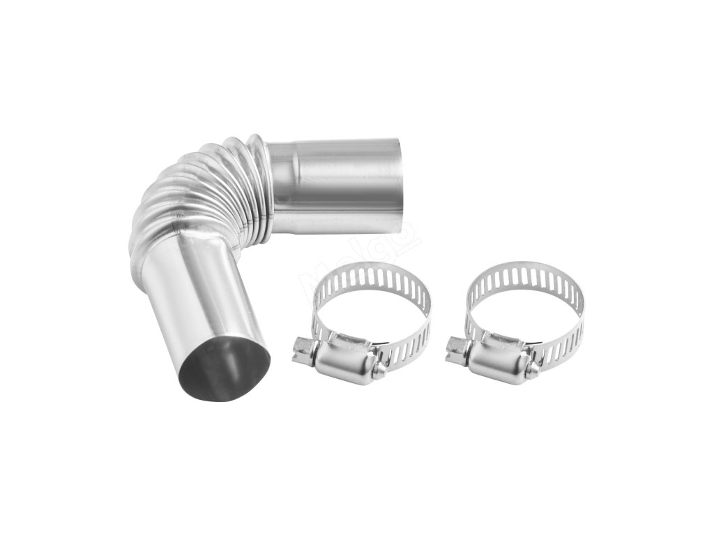 Koleno výfukové trubky 25 mm, 2 svorky, 201 nerez, pro 2-8 kW