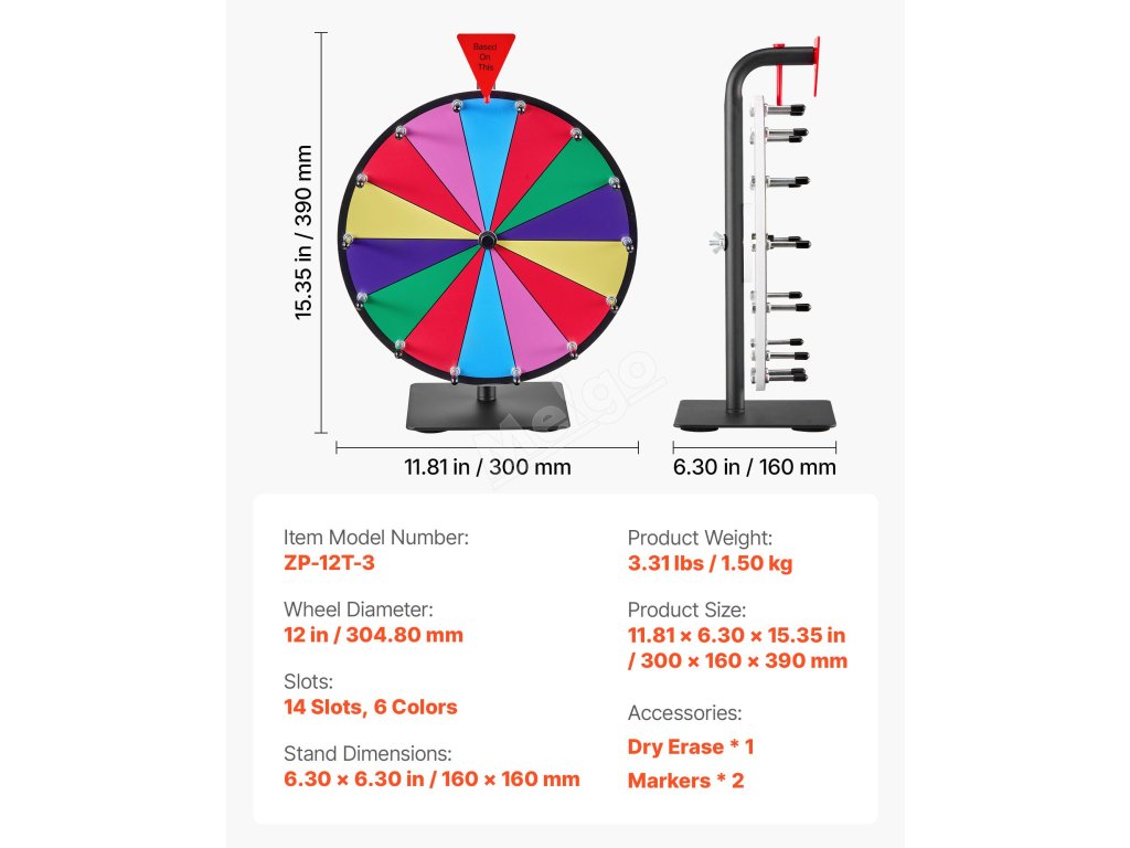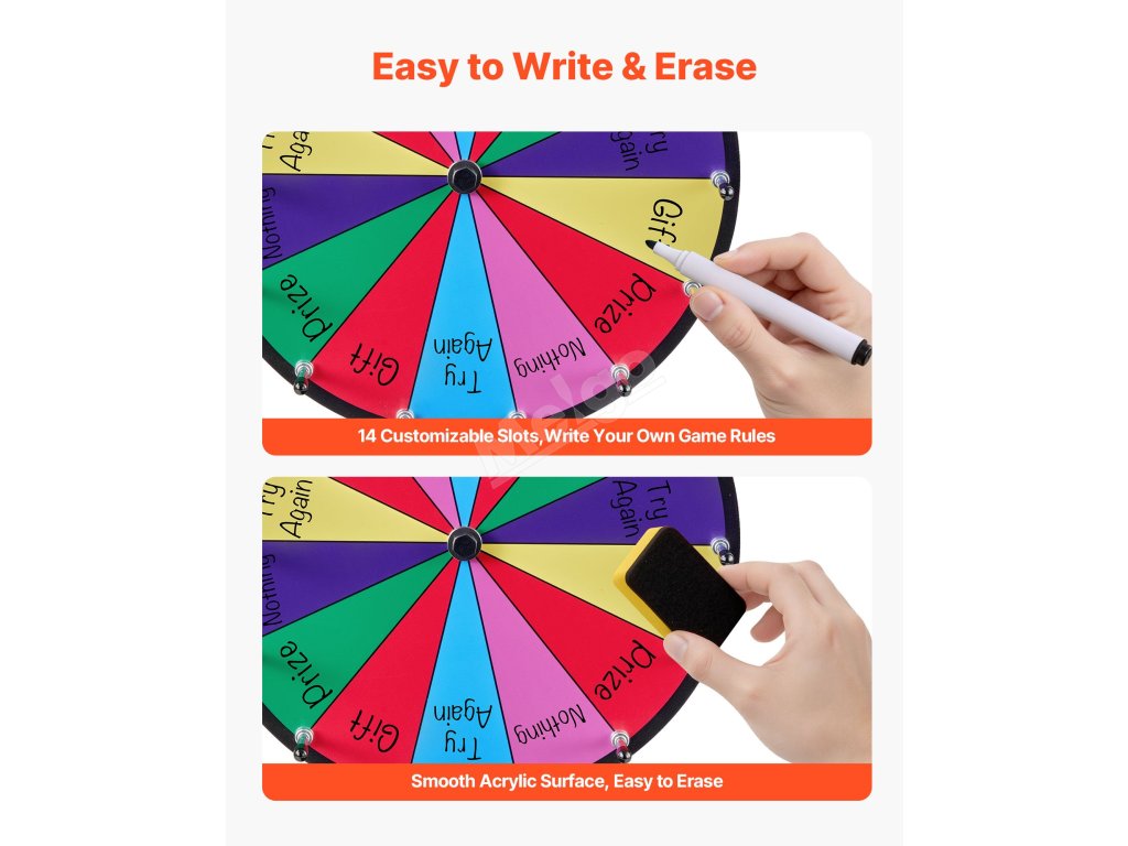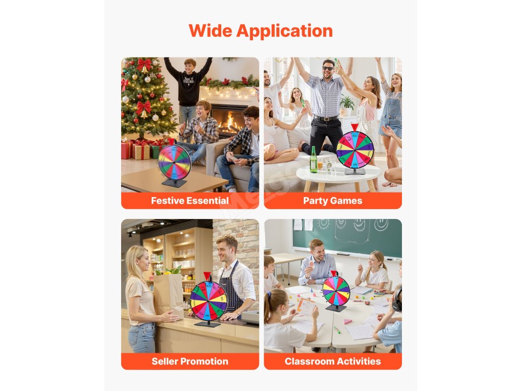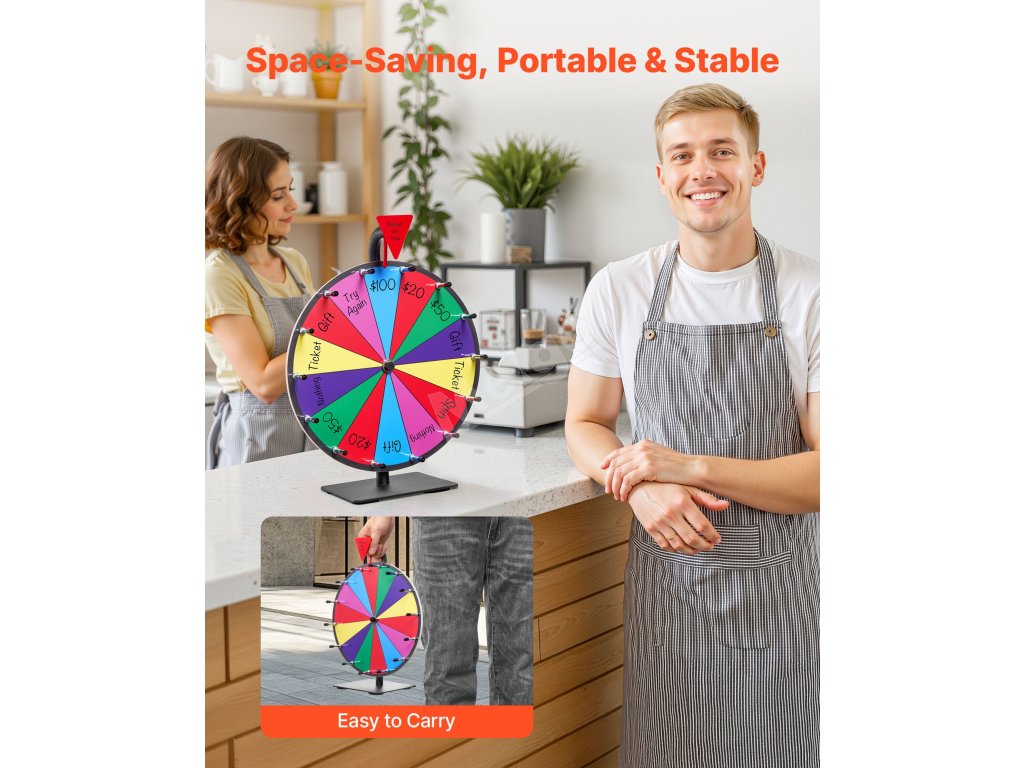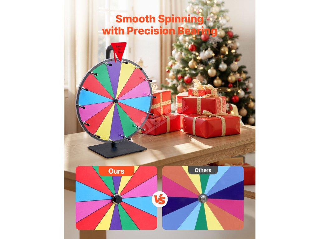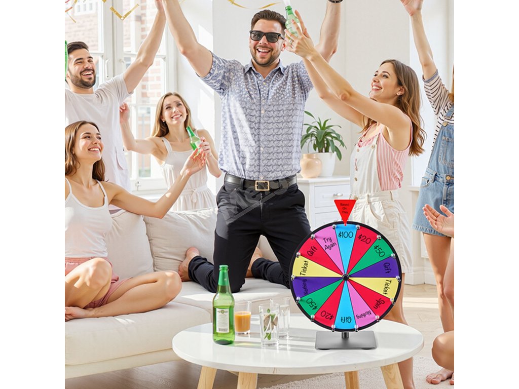 Přineste vzrušení na jakoukoli akci s naším univerzálním kolem s cenami! Díky přizpůsobitelným otvorům, plynulému otáčení a odolné konstrukci je ideální pro večírky, učebny, veletrhy a další akce. Je lehké a snadno se sestavuje, takže poskytuje nekonečnou zábavu pro všechny věkové kategorie.
