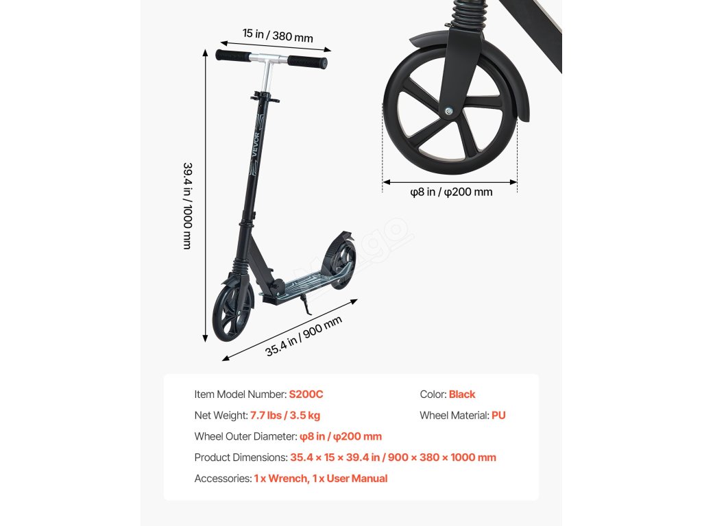 Koloběžka 2-kolová pro 8+, nastavitelná rukojeť, nosnost 99.8 kg