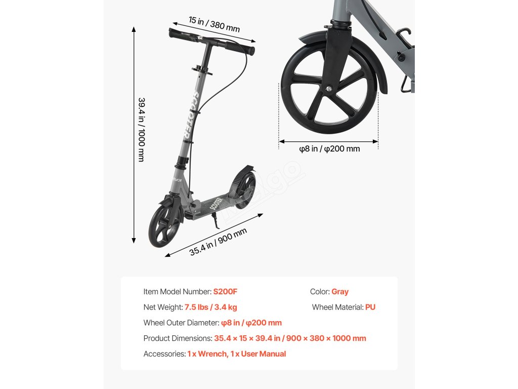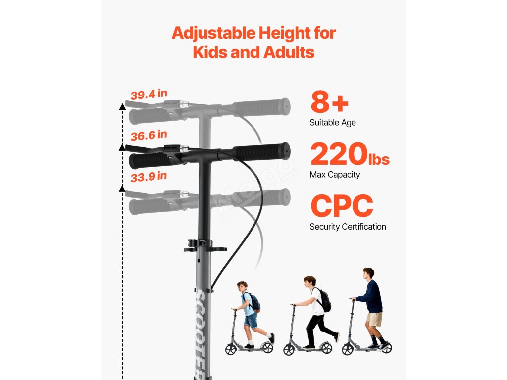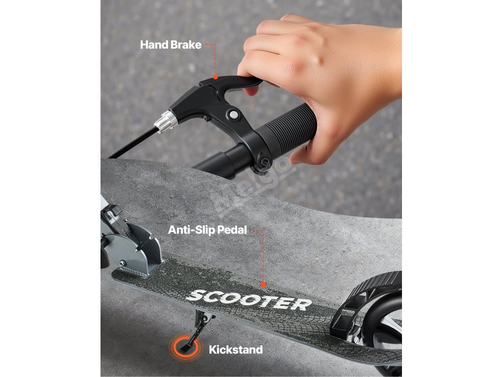 Koloběžka pro 8+ let, 2 kola, nastavitelná výška, nosnost 99,8 kg