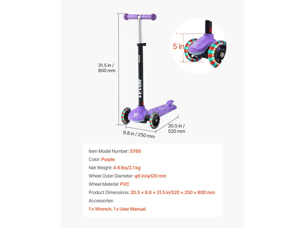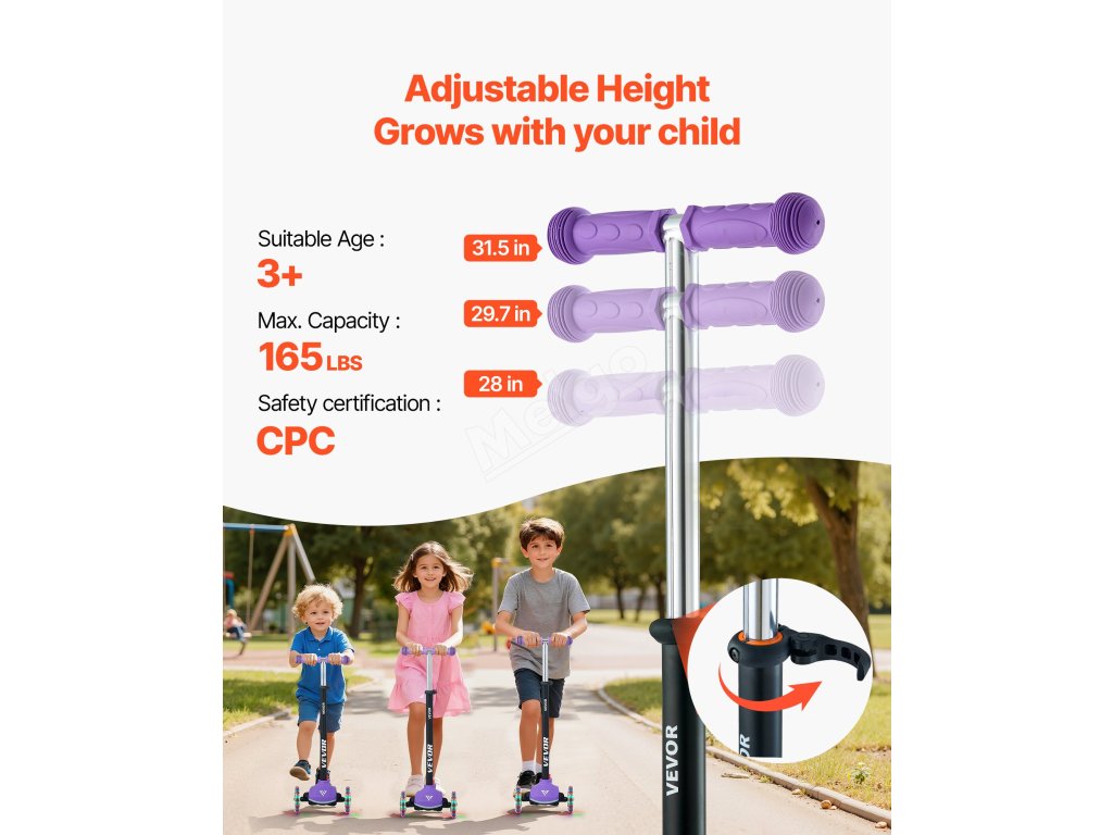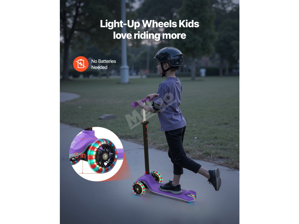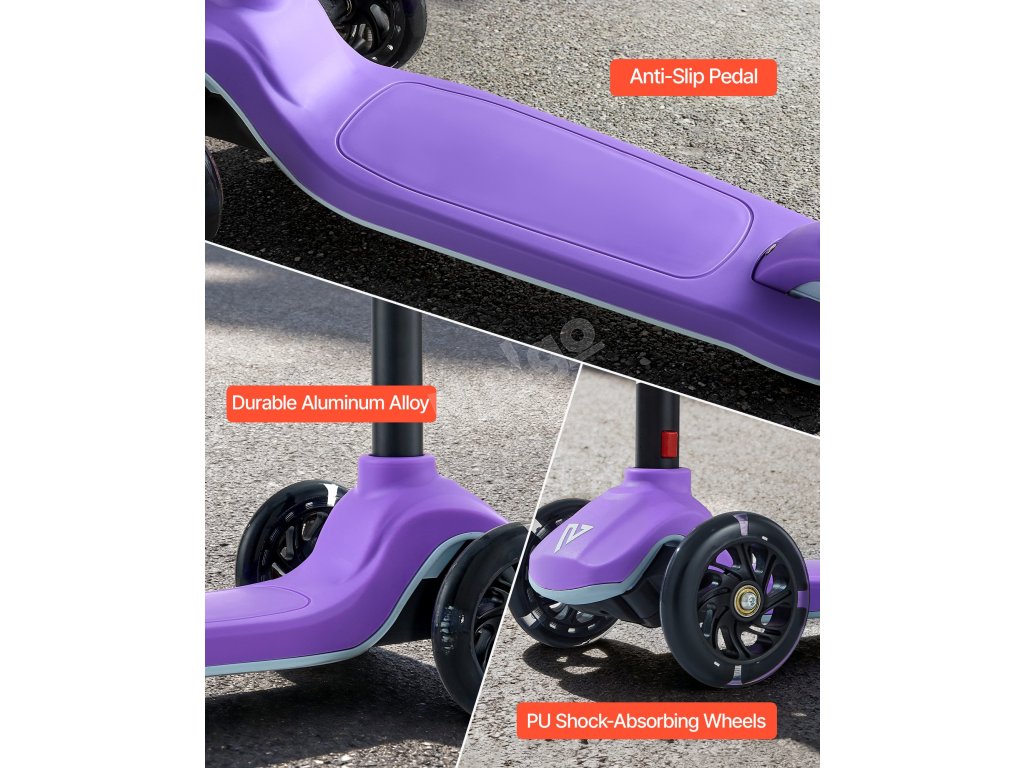 Koloběžka pro děti 3+ tříkolová, svítící kola, nosnost 74.8 kg