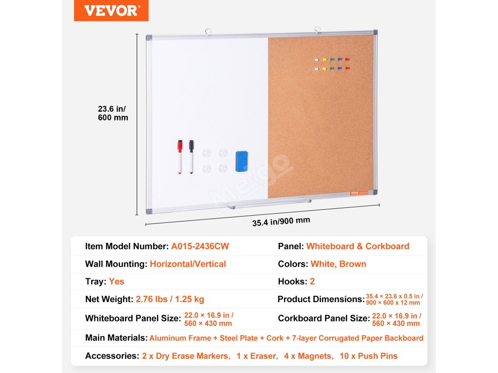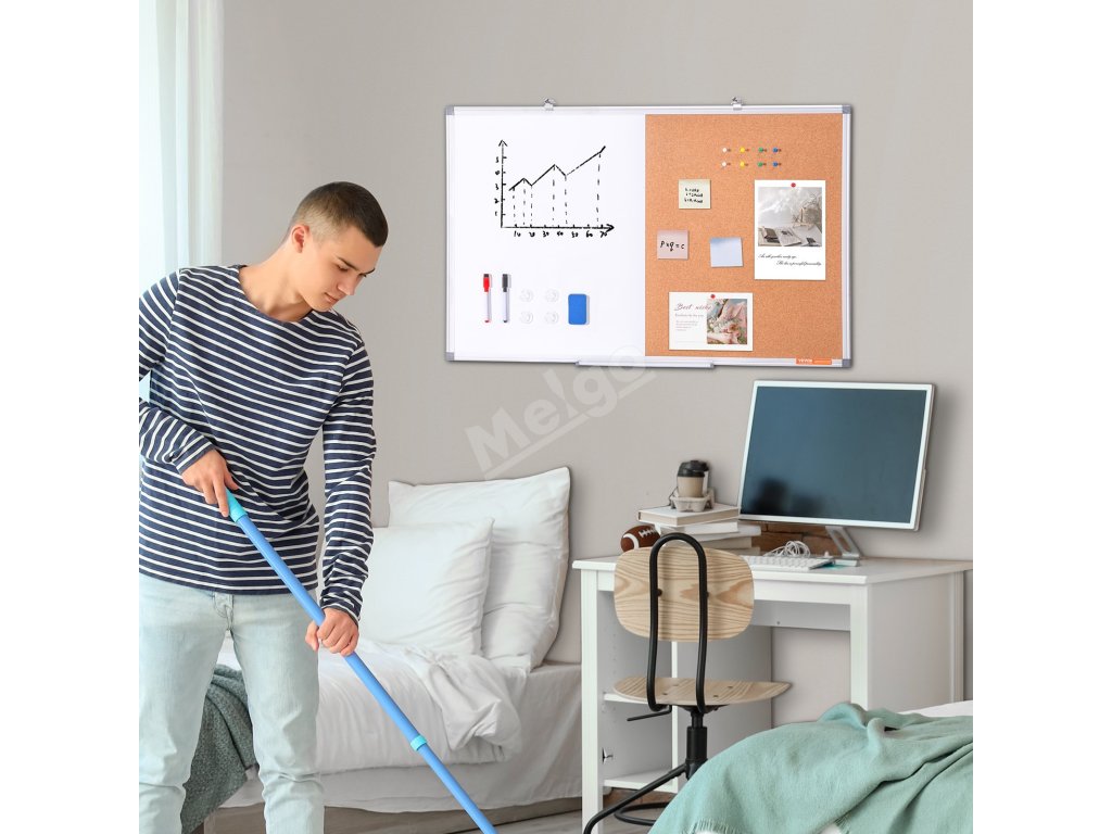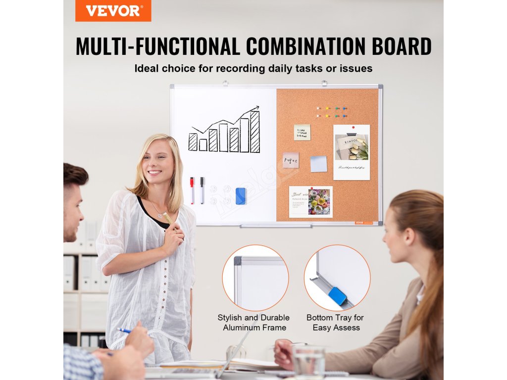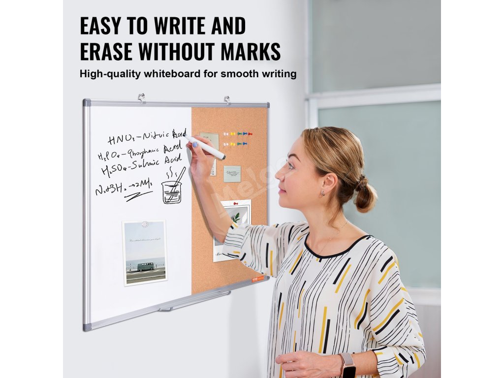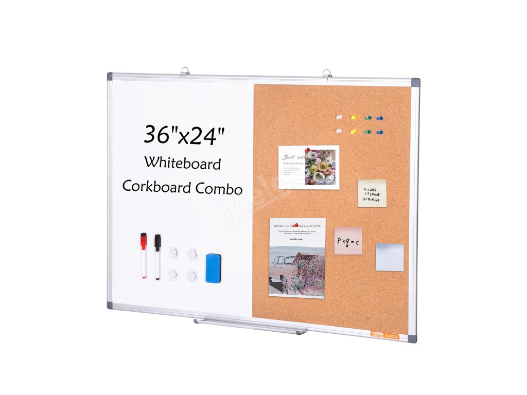 Kombinovaná bílá tabule a korková deska s hliníkovým rámem 36×24"