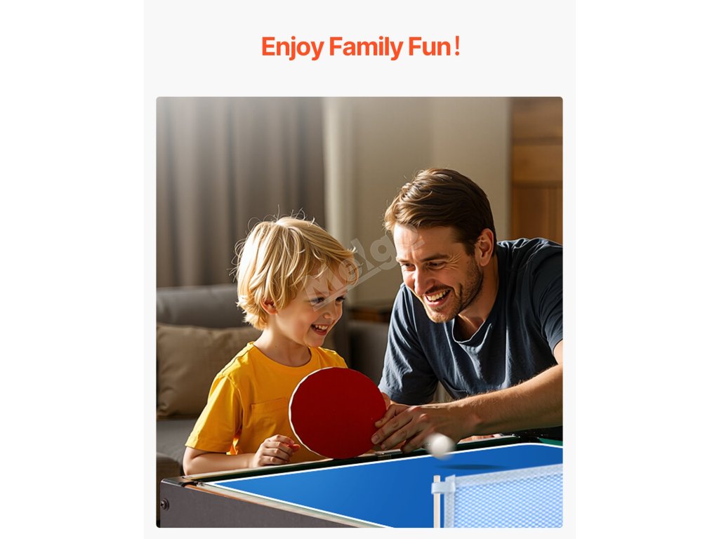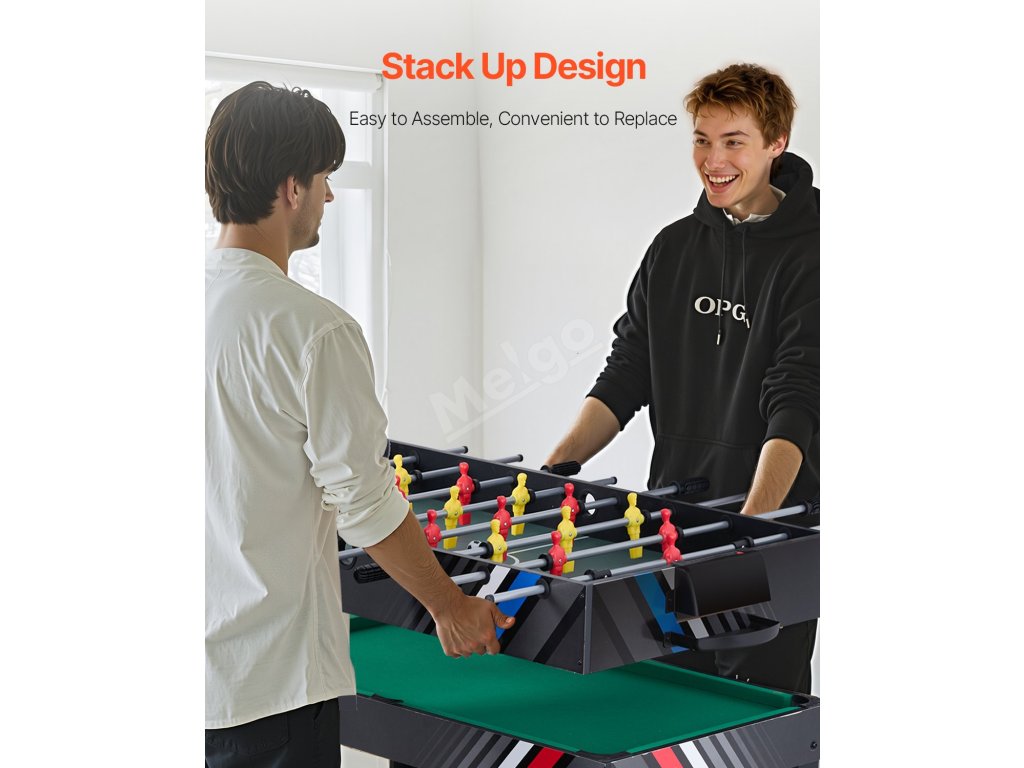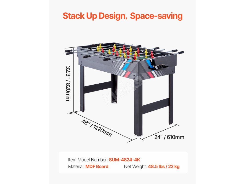 Tento multifunkční herní stůl 4 v 1 kombinuje air hockey, stolní fotbal, kulečník a stolní tenis do jednoho cenově dostupného herního stolu pro hodiny rodinné zábavy. Jeho kompaktní design (48 × 27,2 × 32,3 palců / 122 × 69 × 82 cm) se stohovatelnou konstrukcí bez námahy šetří místo.
