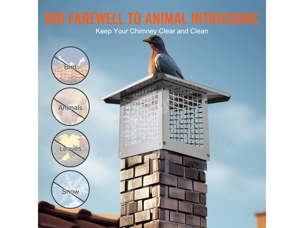 Rozlučte se s ucpáváním komína cizími předměty a zabraňte průchodu zvířat, nečistot nebo listí, čímž zajistíte volný průchod komínem. Kryt odolává silným poryvům větru a zabraňuje padání jisker.