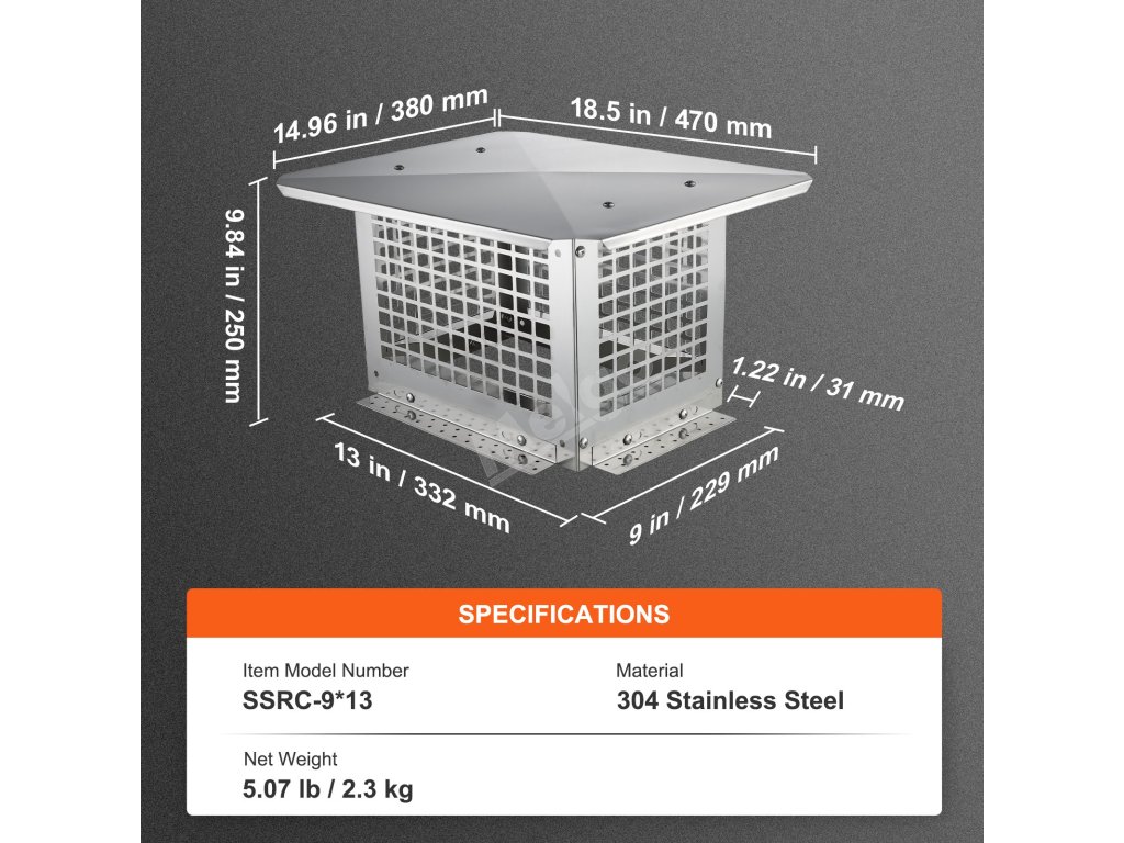 Komínová stříška 330.2×228.6 mm, nerez 304 na síťové vložky