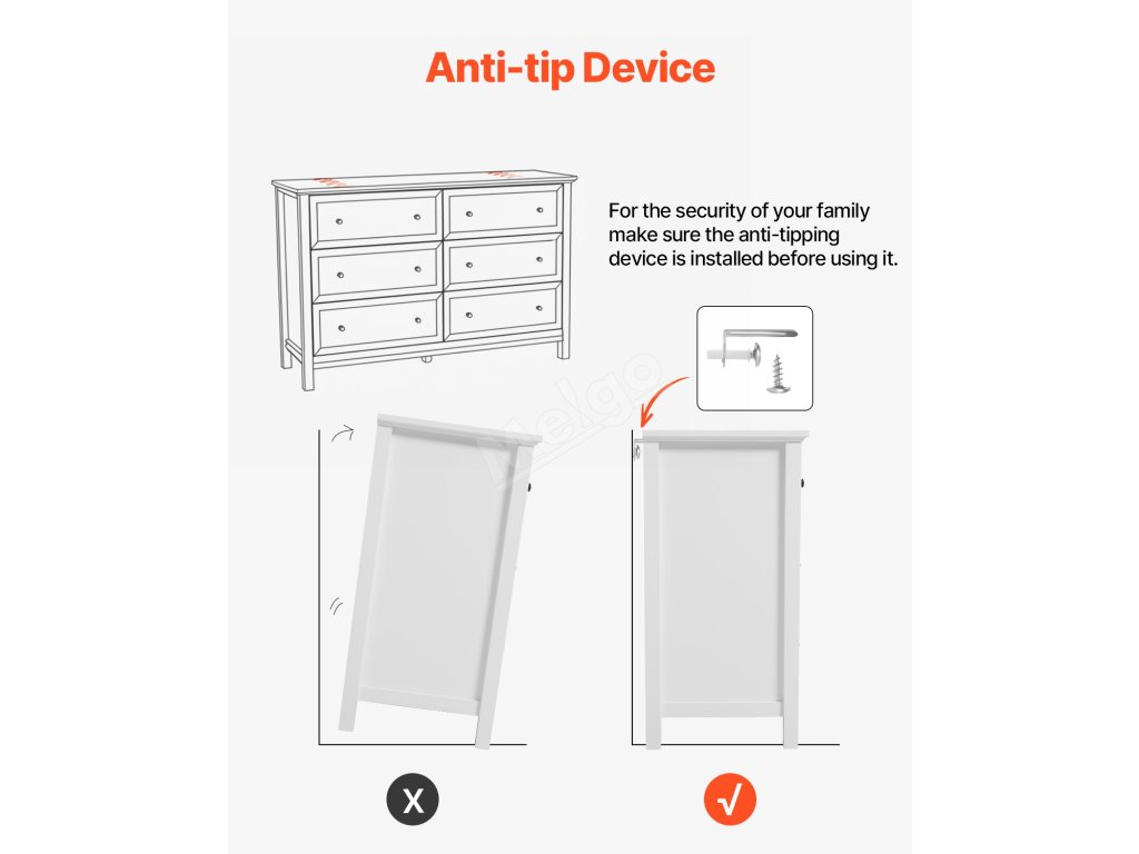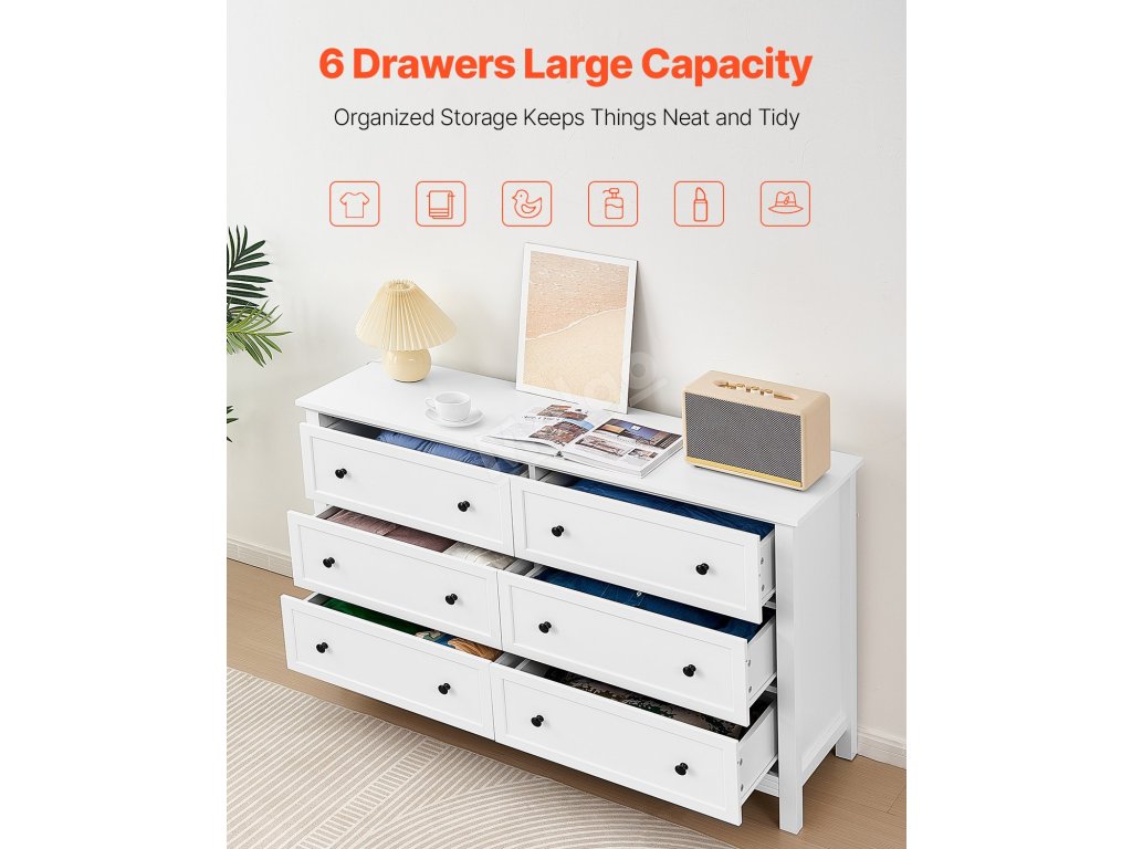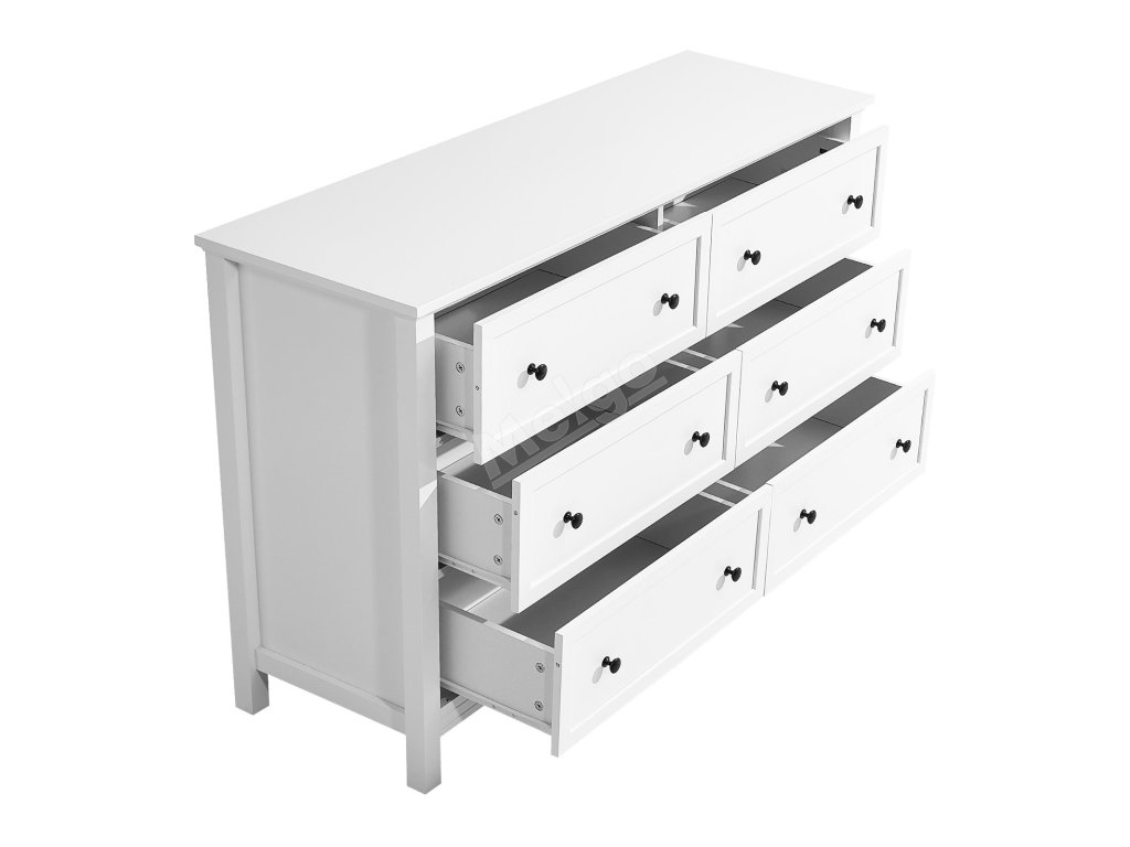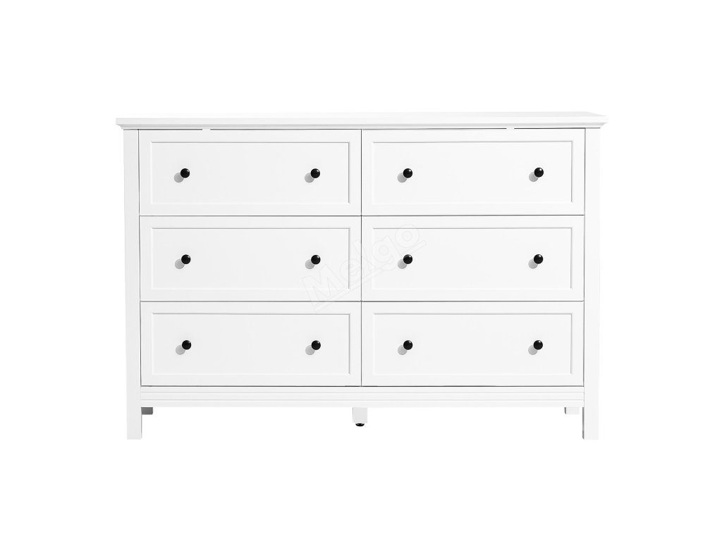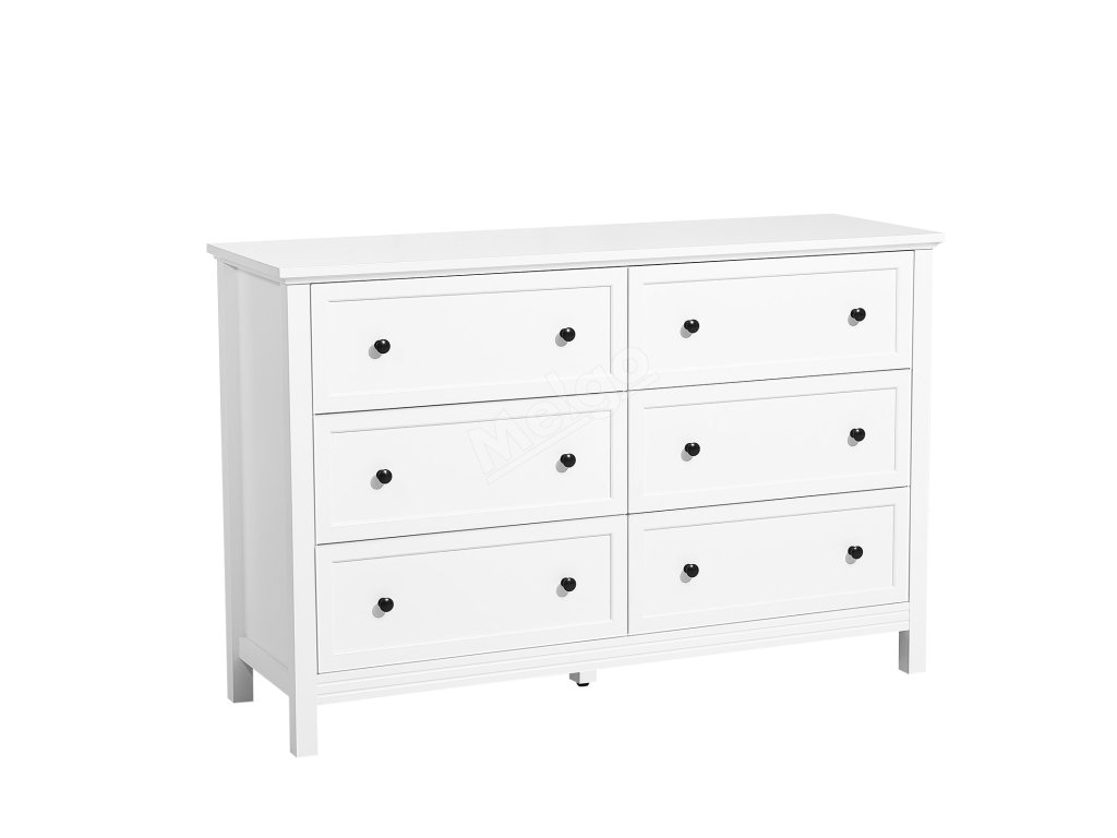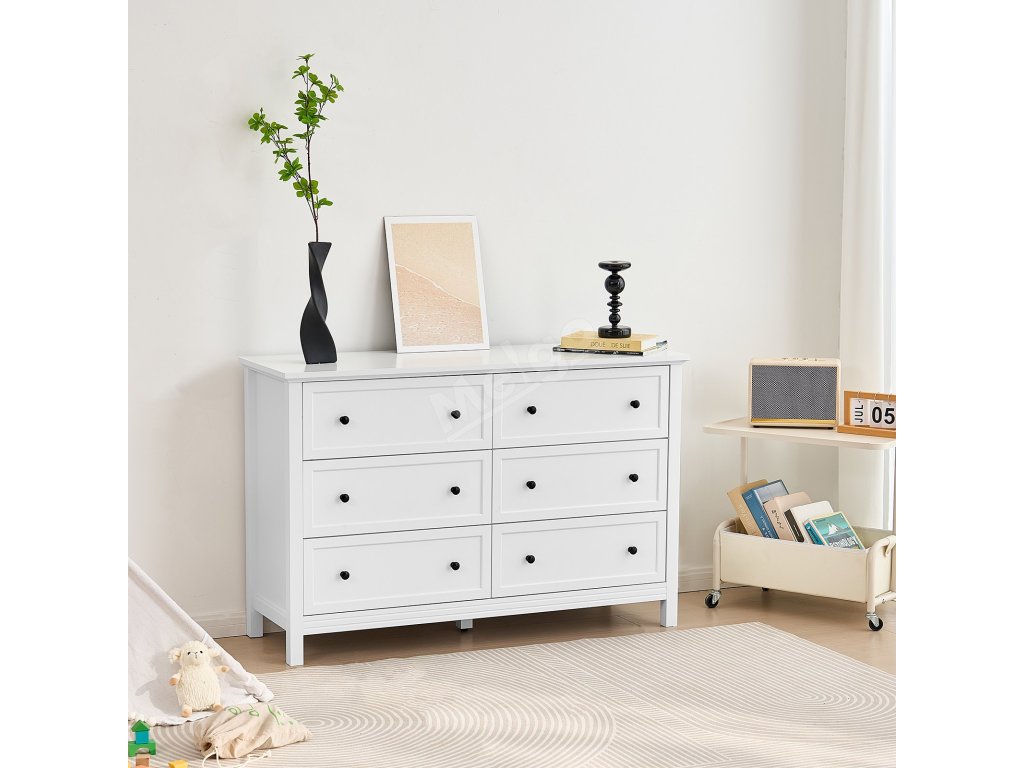 Komoda 6 zásuvek, dřevěná, bílá, s pojistkou proti převrácení