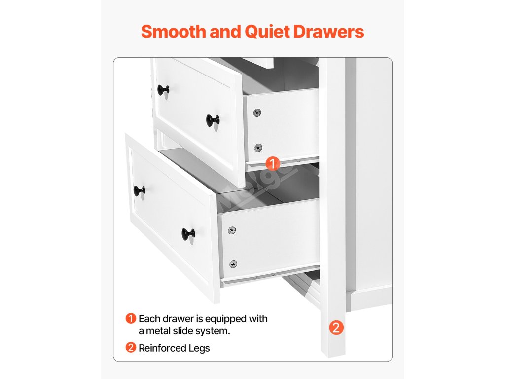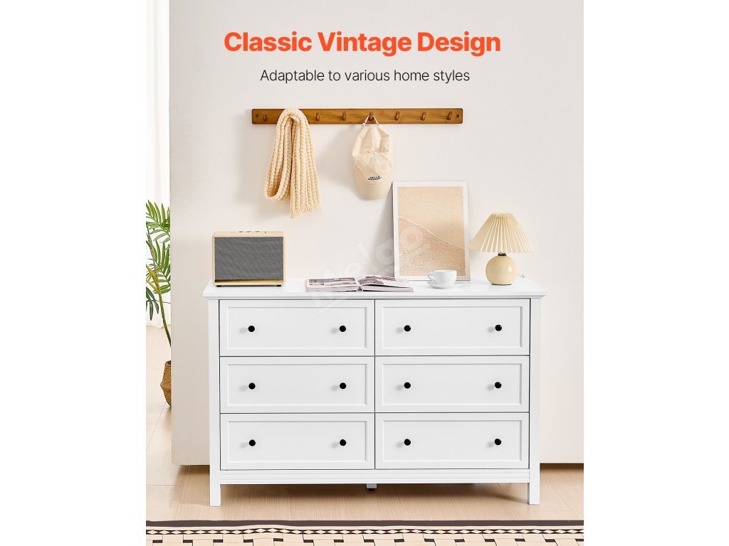 Tato dřevěná komoda se zásuvkami maximalizuje prostor vašeho domova. Více zásuvek poskytuje soukromý úložný prostor, který je ideální pro oblečení, ručníky, klobouky a další předměty.