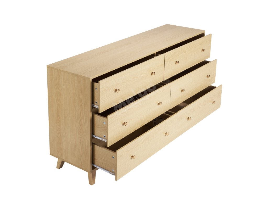Komoda 6 zásuvek, dřevěná, zásuvky na kolejničkách, proti převrácení