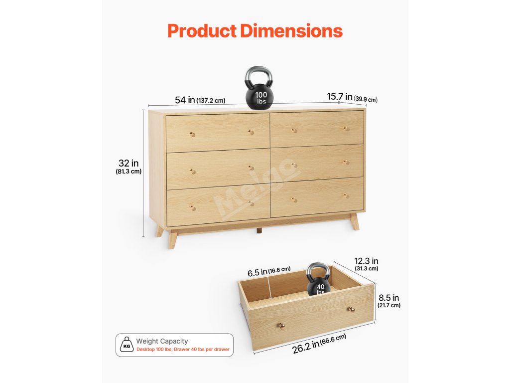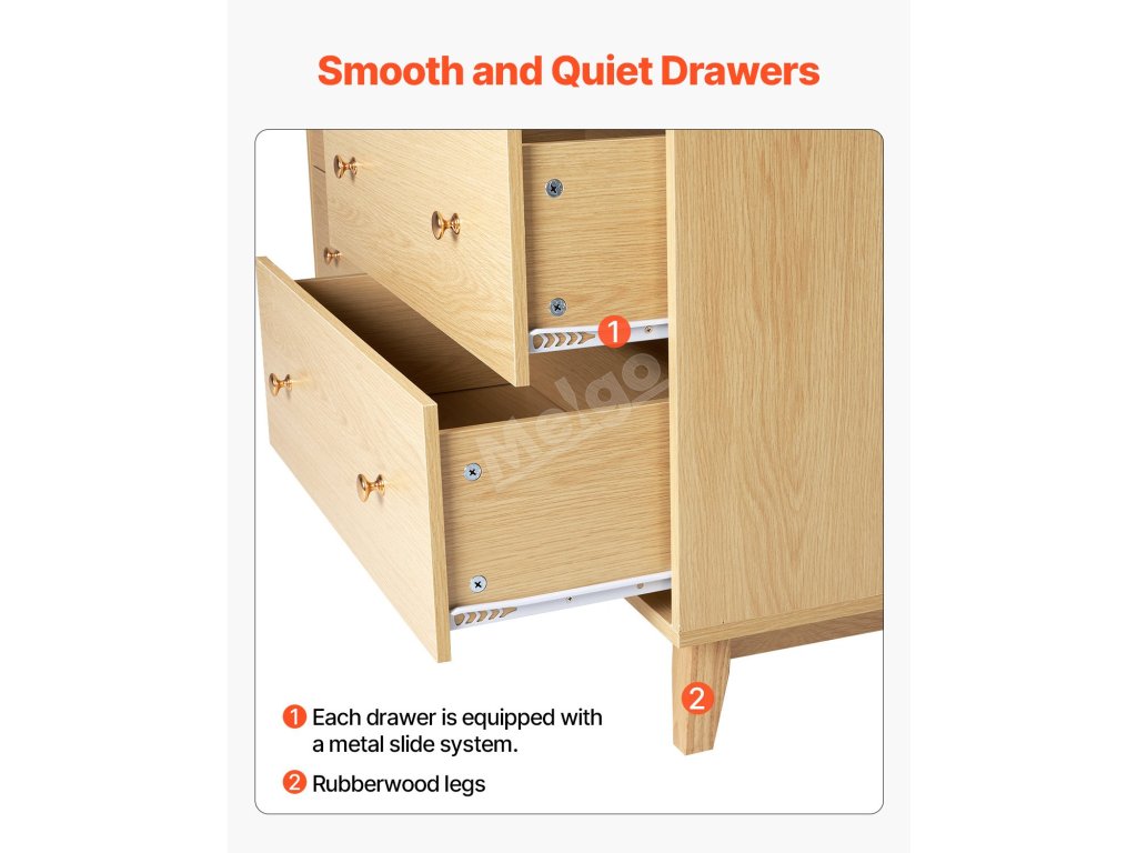 Tato dřevěná komoda se zásuvkami maximalizuje prostor vašeho domova. Více zásuvek poskytuje soukromý úložný prostor, který je ideální pro oblečení, ručníky, klobouky a další předměty.
