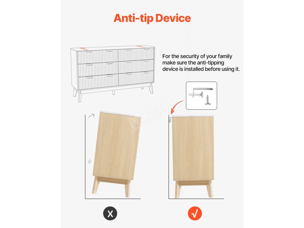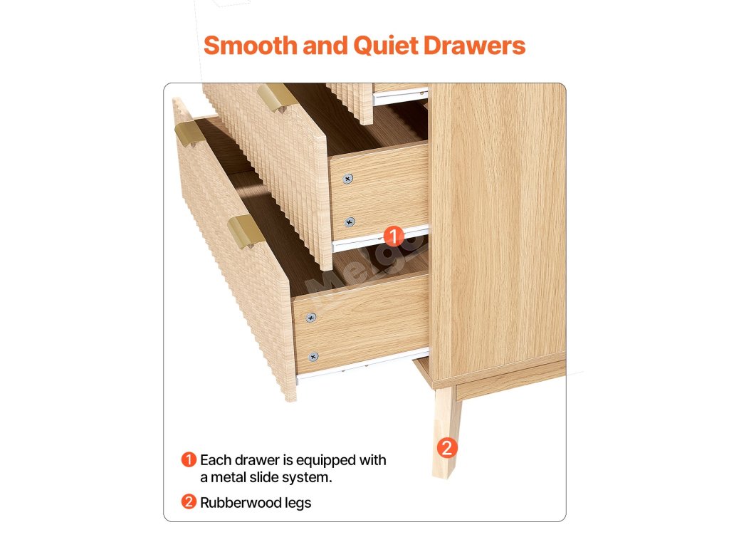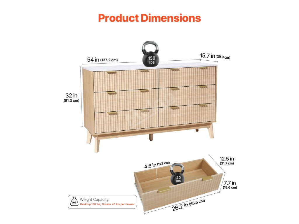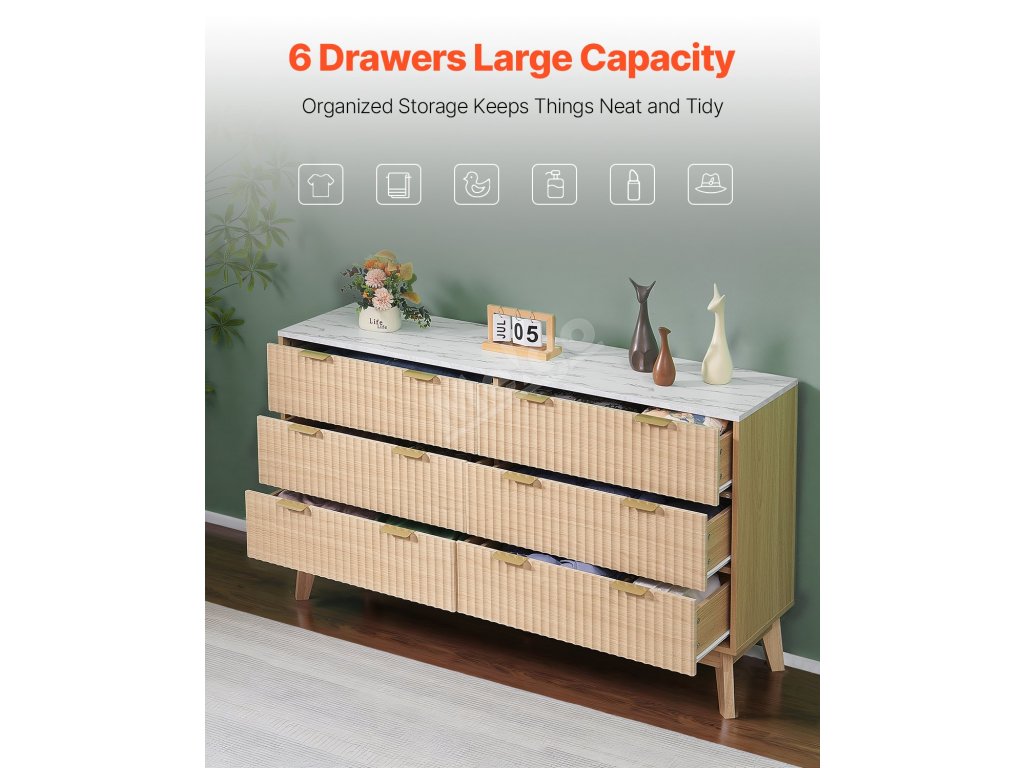Tato dřevěná komoda se zásuvkami maximalizuje prostor vašeho domova. Více zásuvek poskytuje soukromý úložný prostor, který je ideální pro oblečení, ručníky, klobouky a další předměty.