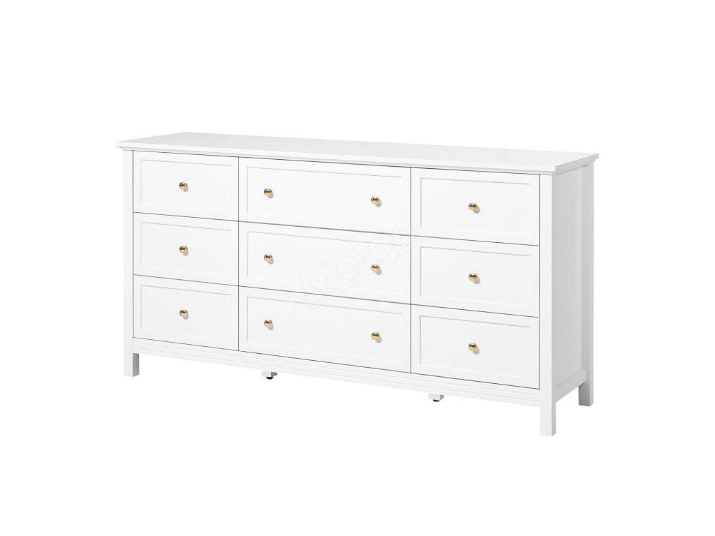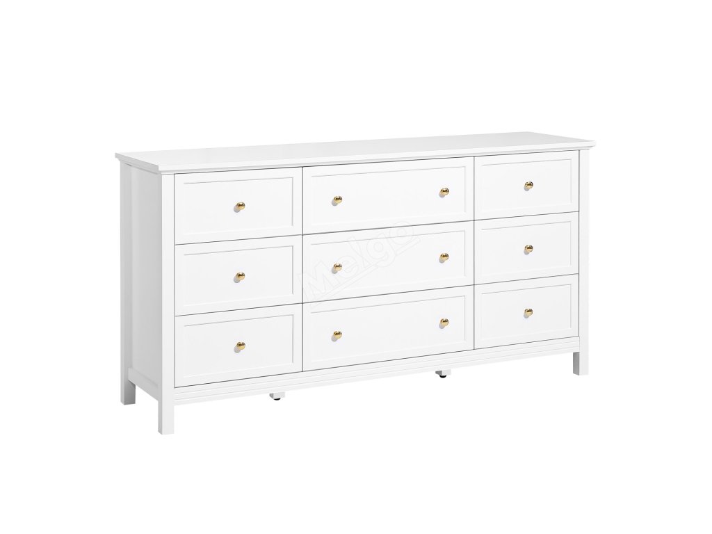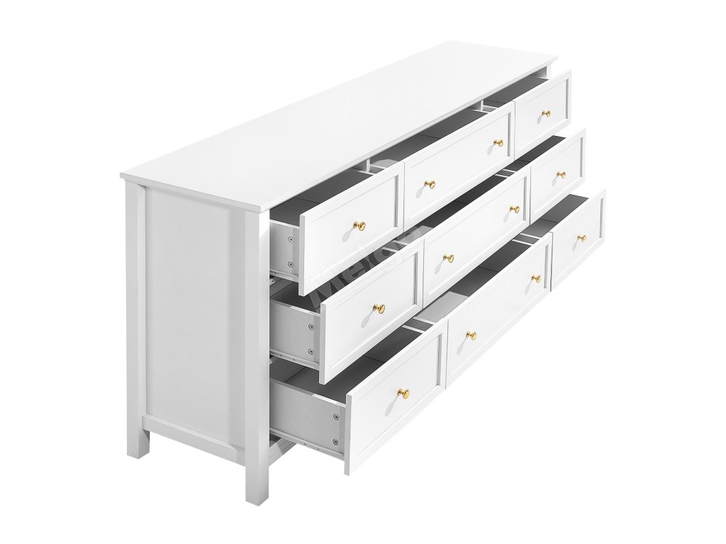 Komoda 9 zásuvek, dřevěná, posuvné zásuvky, bílá, proti převrácení