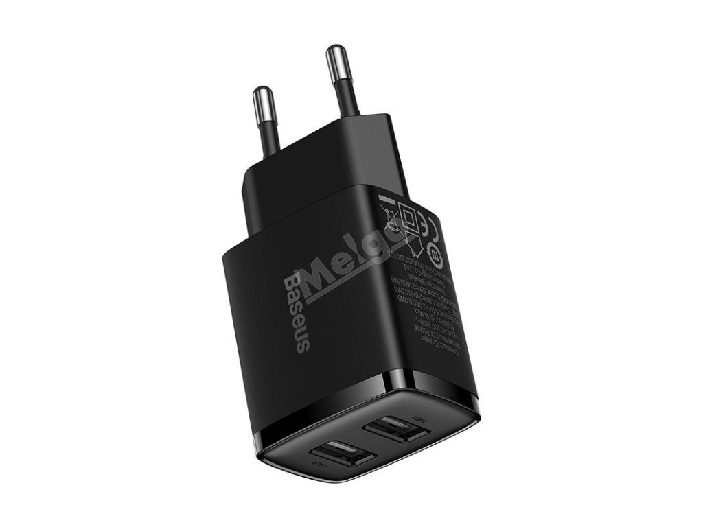 Kompaktní rychlonabíječka Baseus, 2x USB, 10,5 W (černá)