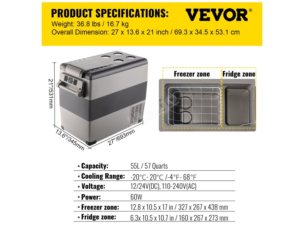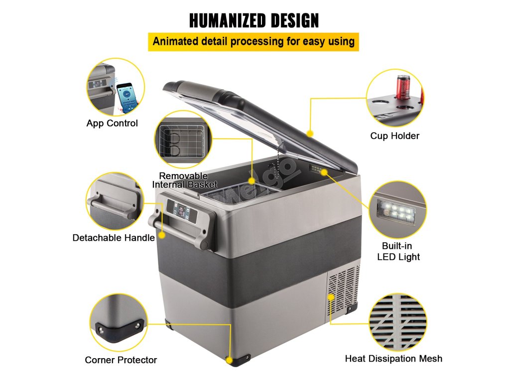 Chladničku s mrazničkou 12 V DC / 24 V DC a 110-240 AC lze připojit k zapalovači automobilu a domácímu zdroji napájení. Přenosná kompresorová chladnička je vhodná pro obytné vozy, kempování, lodě, kempování, rybaření, cestování a outdoorové aktivity.