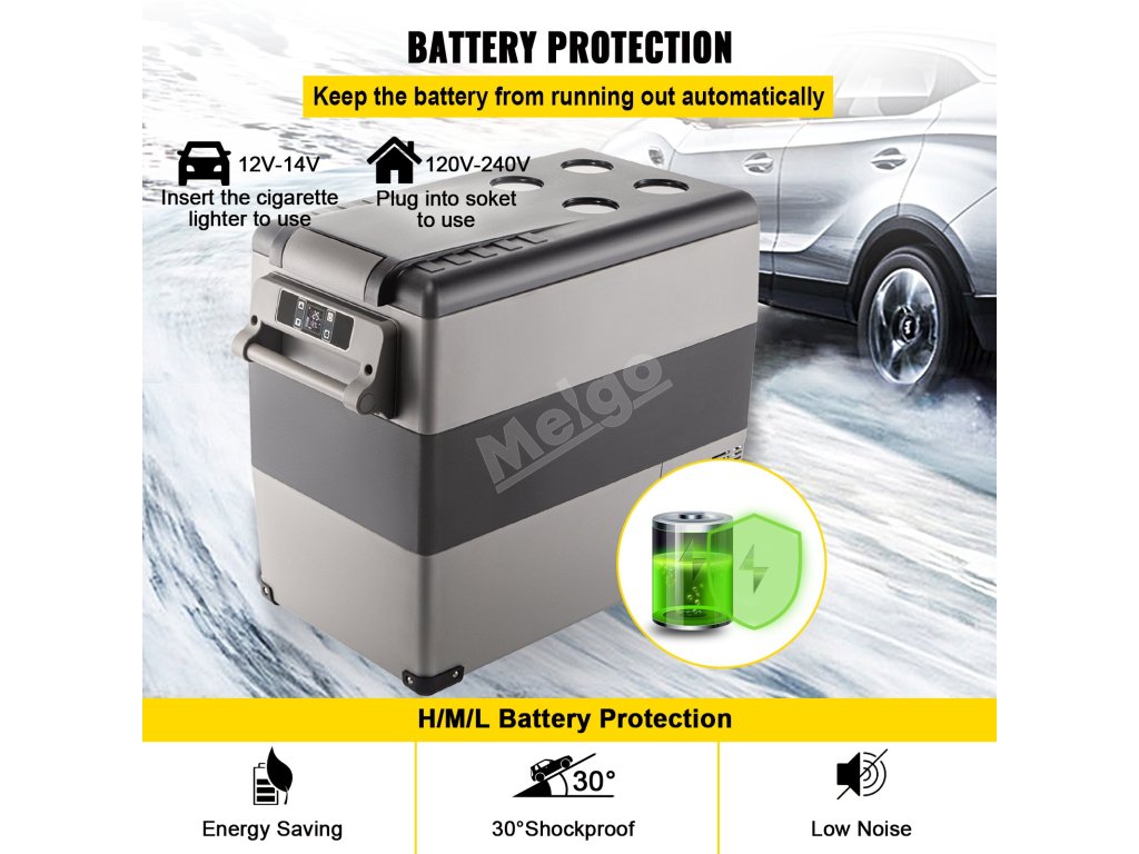 Třívrstvá ochrana baterie může zabránit vybití baterie vozidla chladničkou. Je navržena tak, aby byla tichá a zajistila vám klidný spánek po dlouhé jízdě. Chladničku lze také udržet stabilní díky jejímu naklonění o 45°.