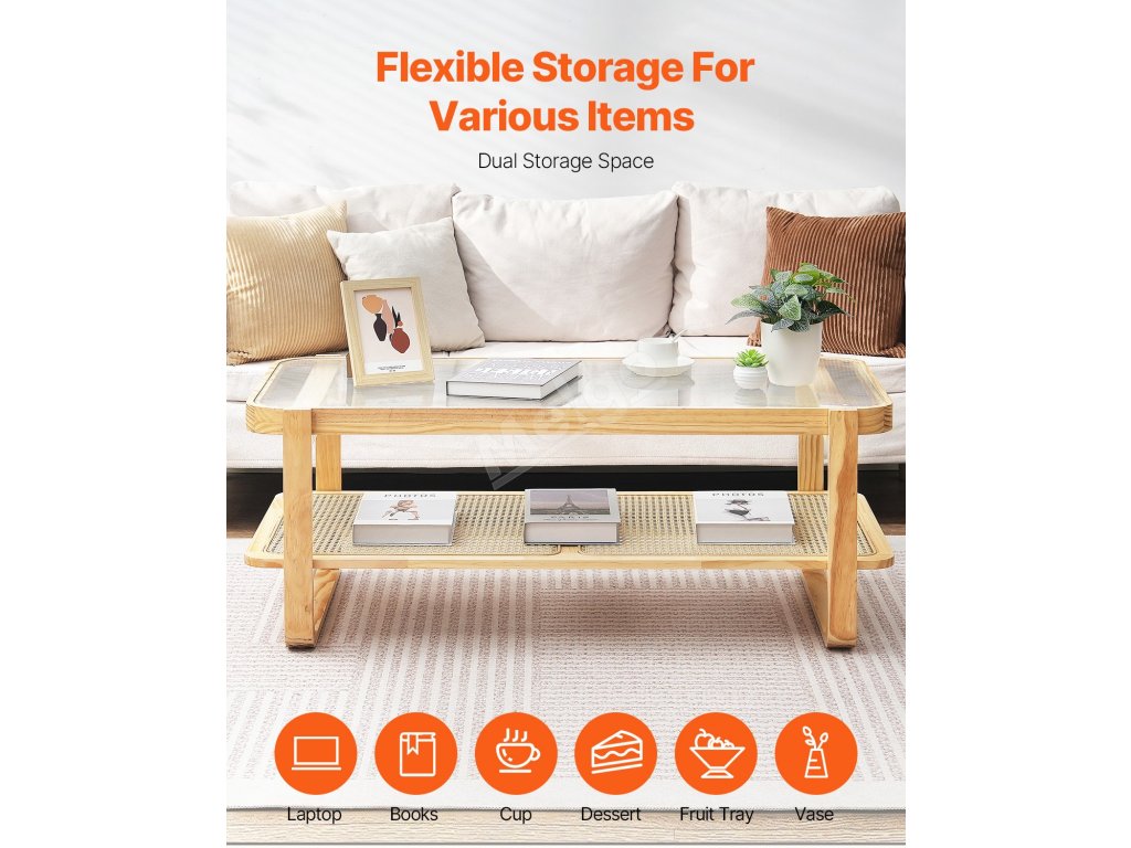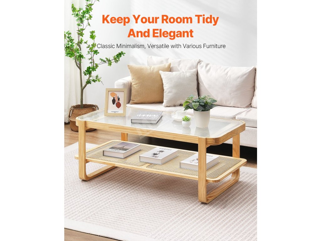 Náš boho konferenční stolek má povrch z tvrzeného skla, který je ideální pro uložení notebooku, nápojů, dálkových ovladačů a dalších věcí. Otevřené police jsou ideální pro ukládání časopisů a knih a nabízejí kombinaci stylu a funkčnosti.