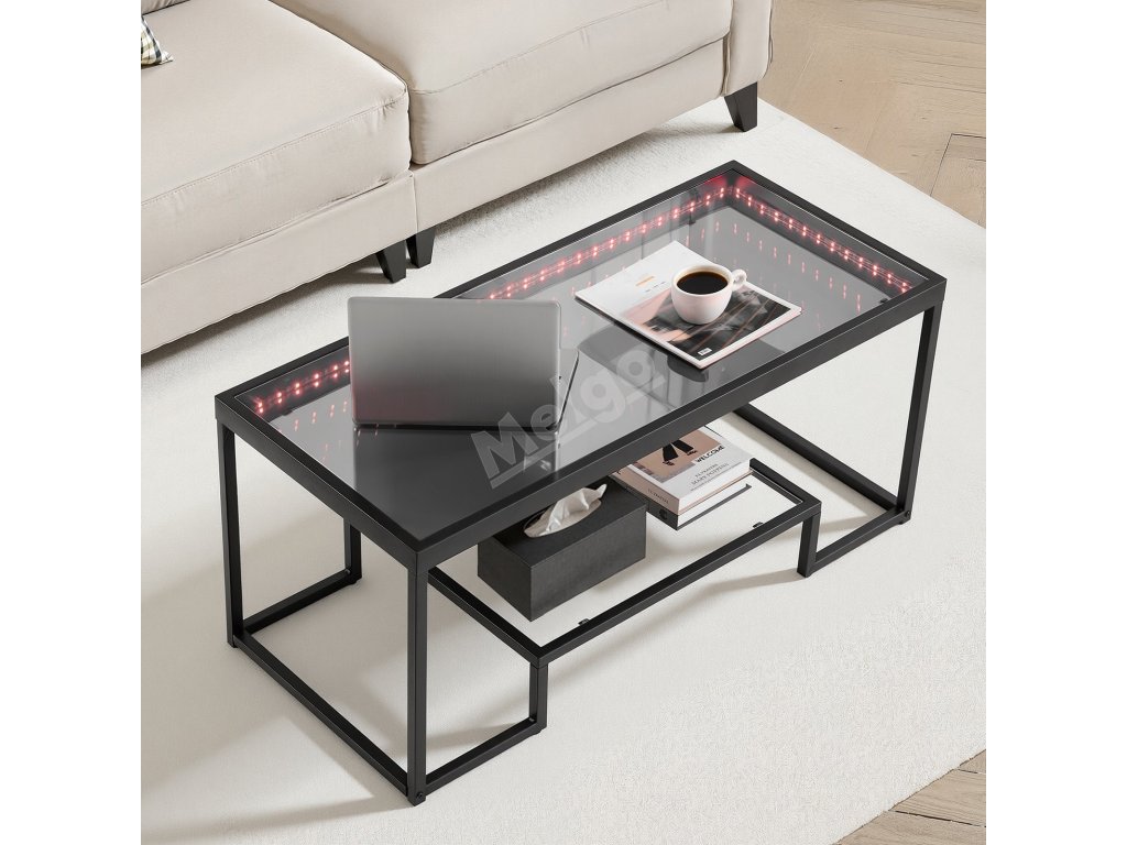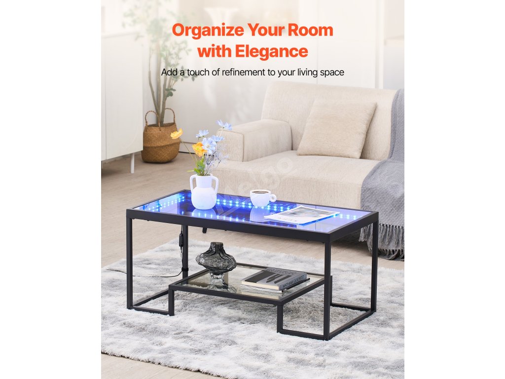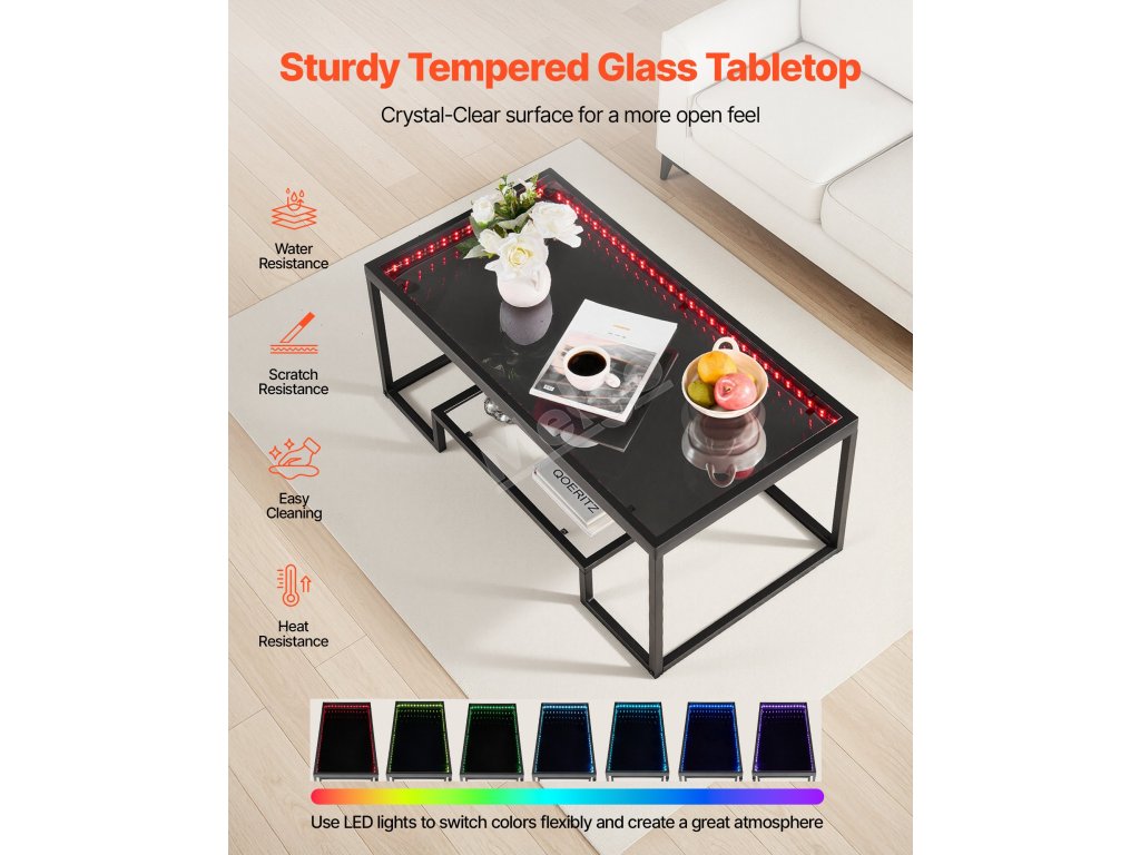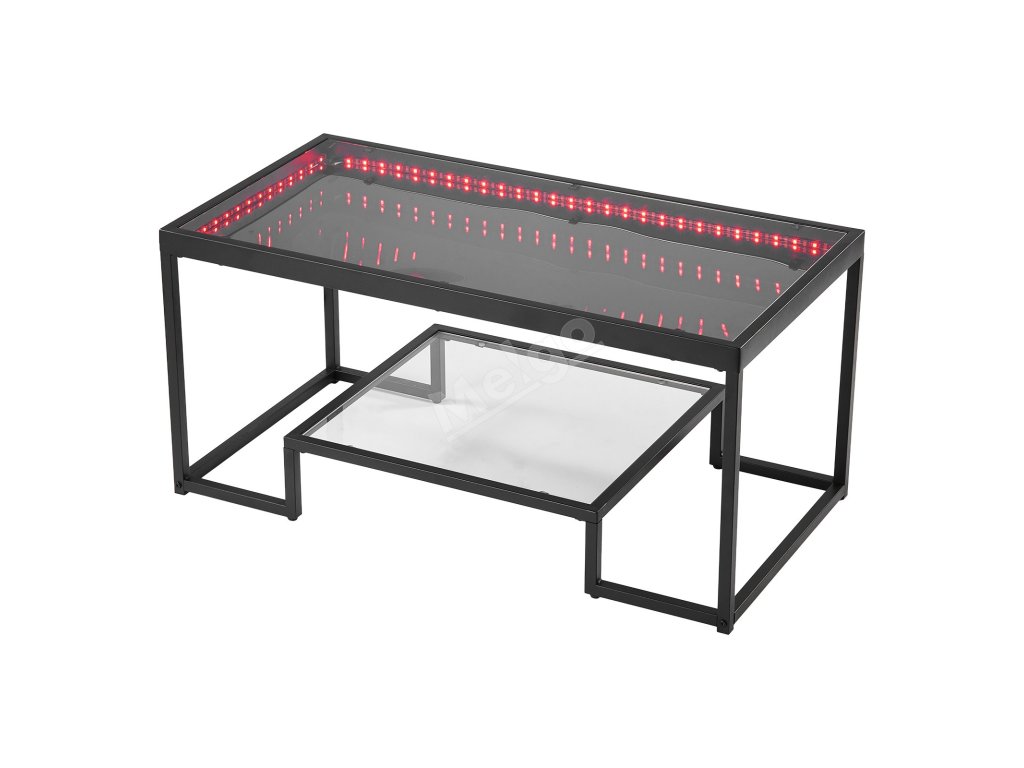 Konferenční stolek z tvrzeného skla s led osvětlením, 2 police