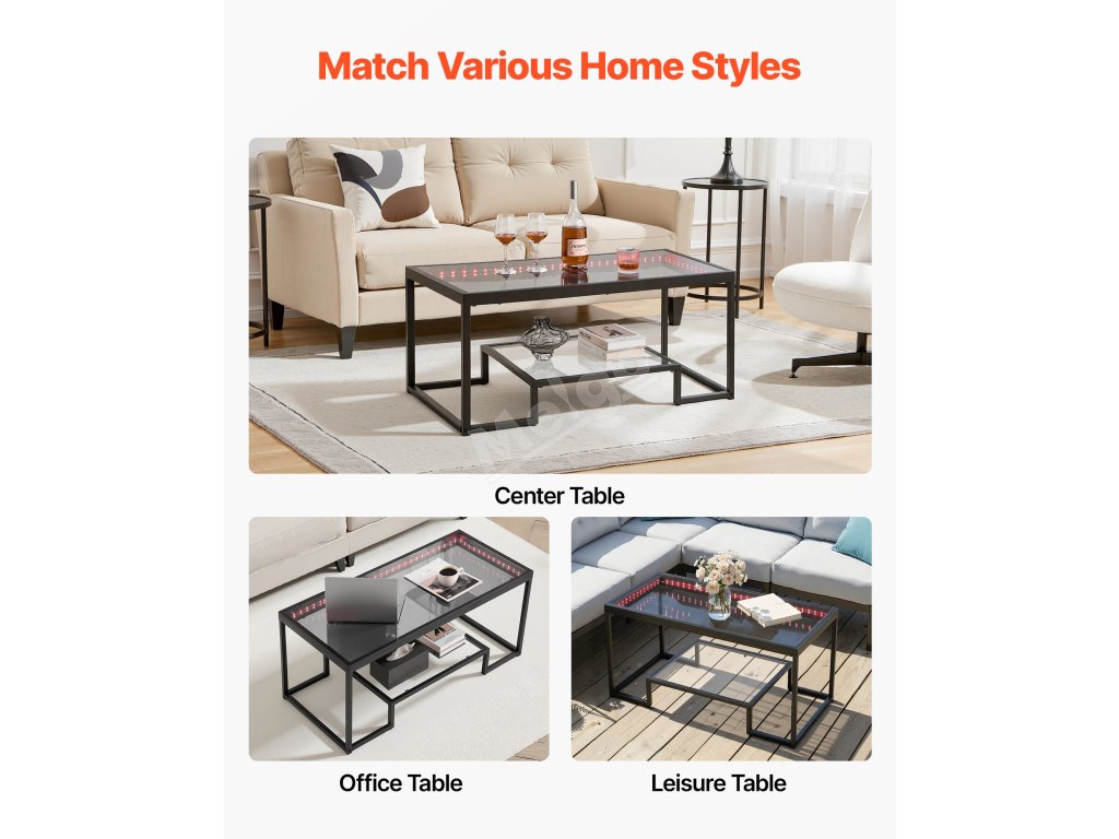 Tento skleněný konferenční stolek je vyroben z vysoce průhledného tvrzeného skla a vyniká odolností proti vodě a oleji. Skvrny lze snadno setřít jediným otřením, takže každodenní údržba je hračka a stolek zůstává lesklý i bez složité péče.