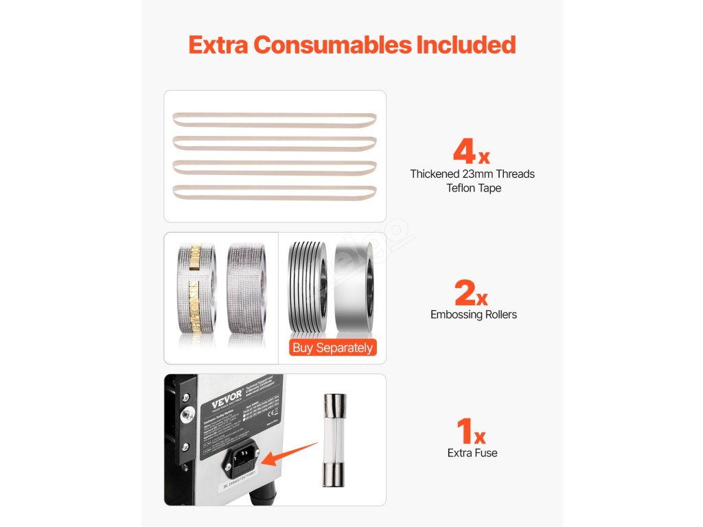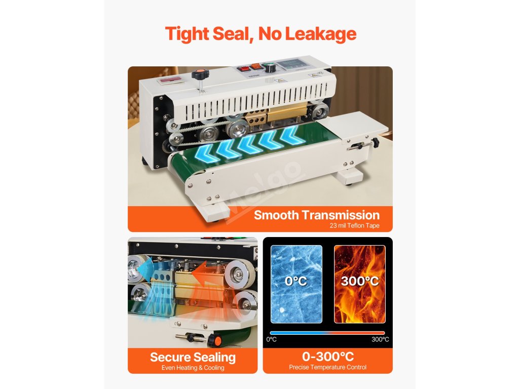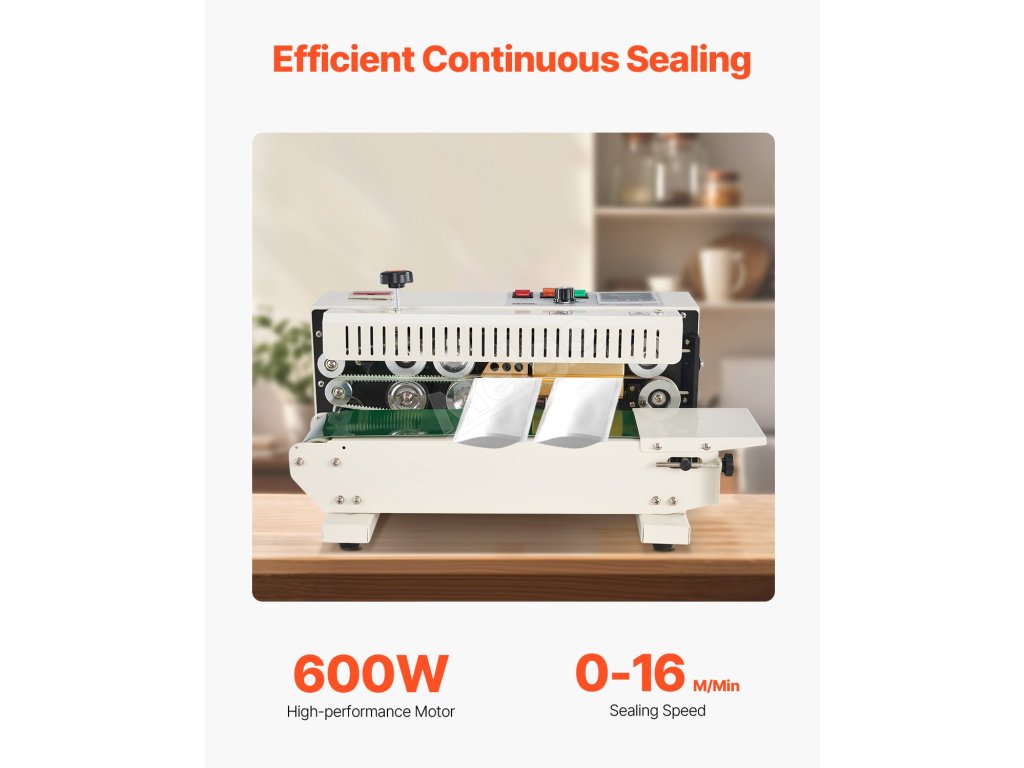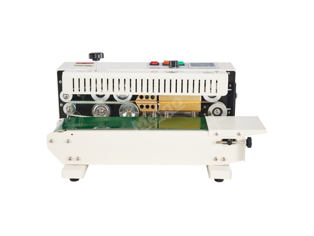 Díky modernímu topnému bloku pro rychlé zahřívání a chlazení pracuje náš stroj na kontinuální uzavírání plynule bez přehřívání. Jeho součástí je teflonová páska s 23 závity pro bezchybné utěsnění a vylepšený ventilátor pro stabilní a spolehlivý provoz.