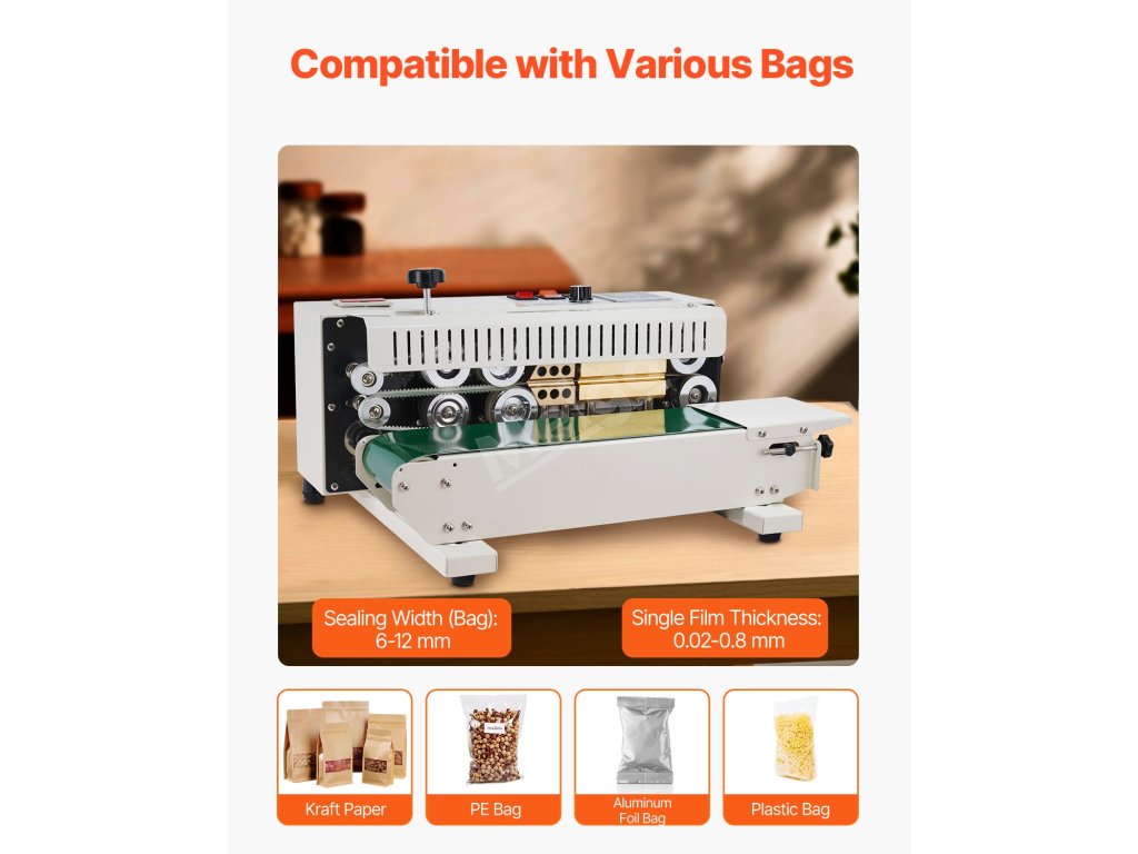 Páskový uzávěr si snadno poradí s různými materiály a typy sáčků - od kraftového papíru a PE sáčků až po hliníkovou fólii a plastové sáčky. Bez ohledu na typ předmětu, který potřebujete uzavřít, poskytuje bezpečné a spolehlivé uzavření pro trvalé uchování.