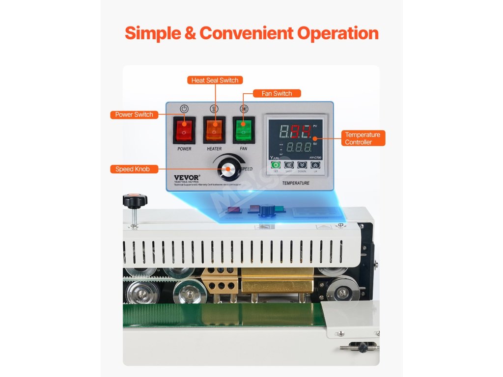 Díky intuitivnímu ovládacímu panelu a dodávanému příslušenství zjednodušuje náš kontinuální zavírač pytlů obsluhu a údržbu. Jednoduše upravte nastavení pro různé tloušťky sáčků, abyste zajistili konzistentní těsnicí výkon.