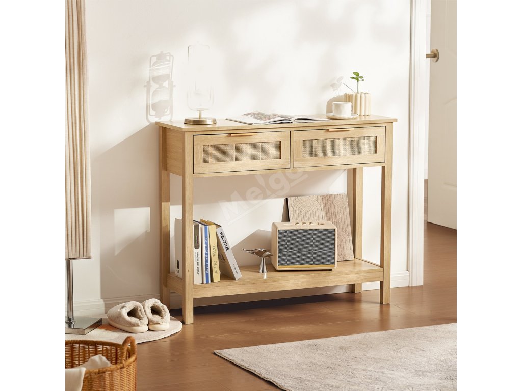 Konzolový stolek z ratanu, 2 zásuvky, posuvná dvířka do předsíně