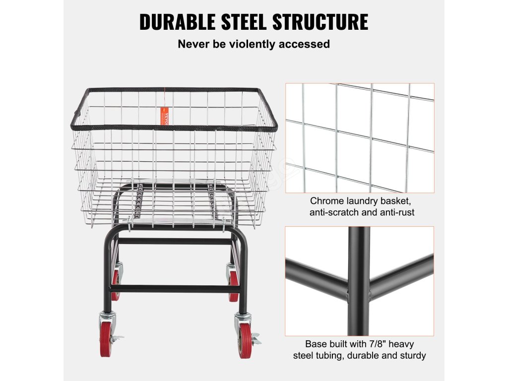 Tento vozík na prádlo je vyroben z kvalitního pozinkovaného ocelového koše a potaženého nosného rámu, který vám zajistí pohodlné používání po dlouhá léta.