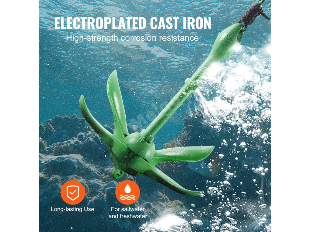 Naše kotva na kajak vyrobená z odolné litiny je galvanicky pokovená a nastříkaná, což zajišťuje odolnost proti korozi i ve slané vodě.