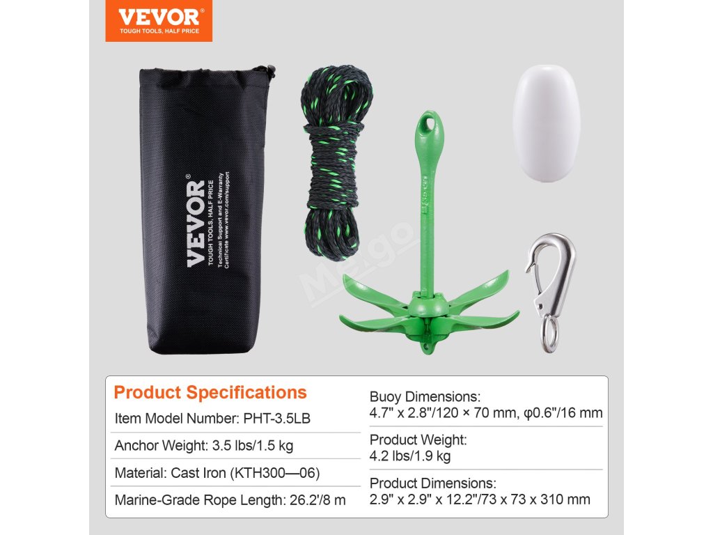 | Hmotnost kotvy | 3.5 liber/1,5 kg |