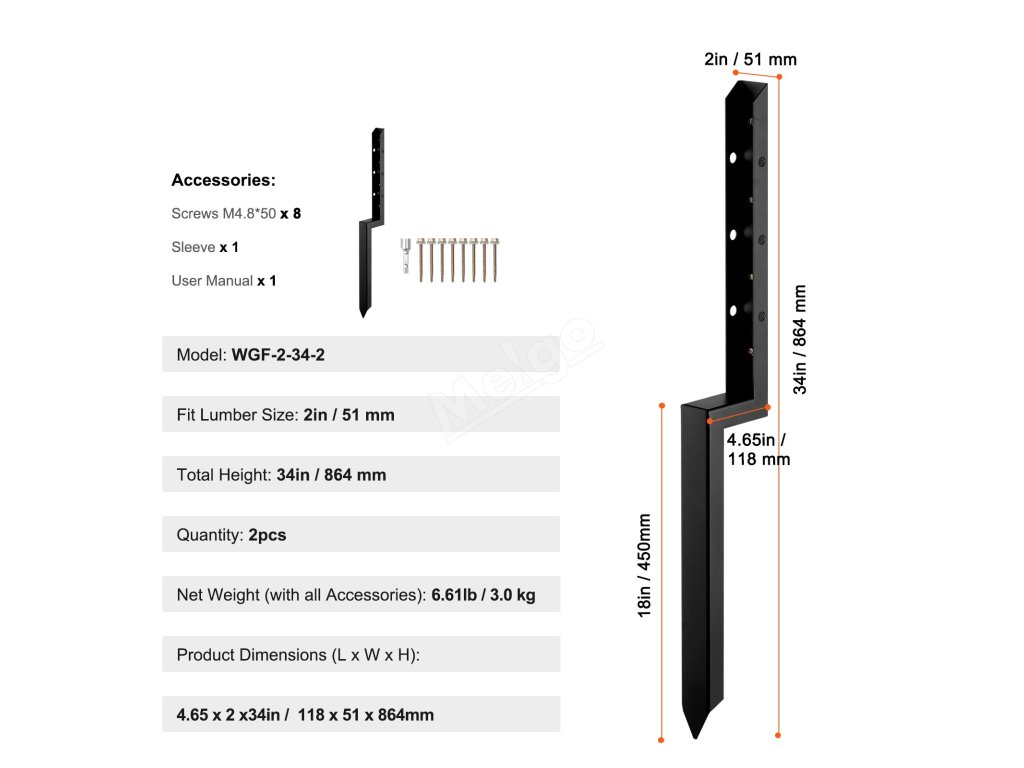 Kotva na sloupek oplocení, 2 ks, vnitřní průměr 2×2 inches, ocel