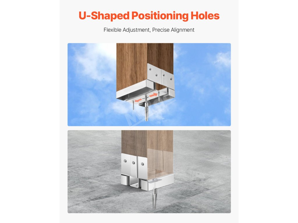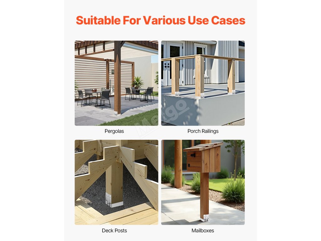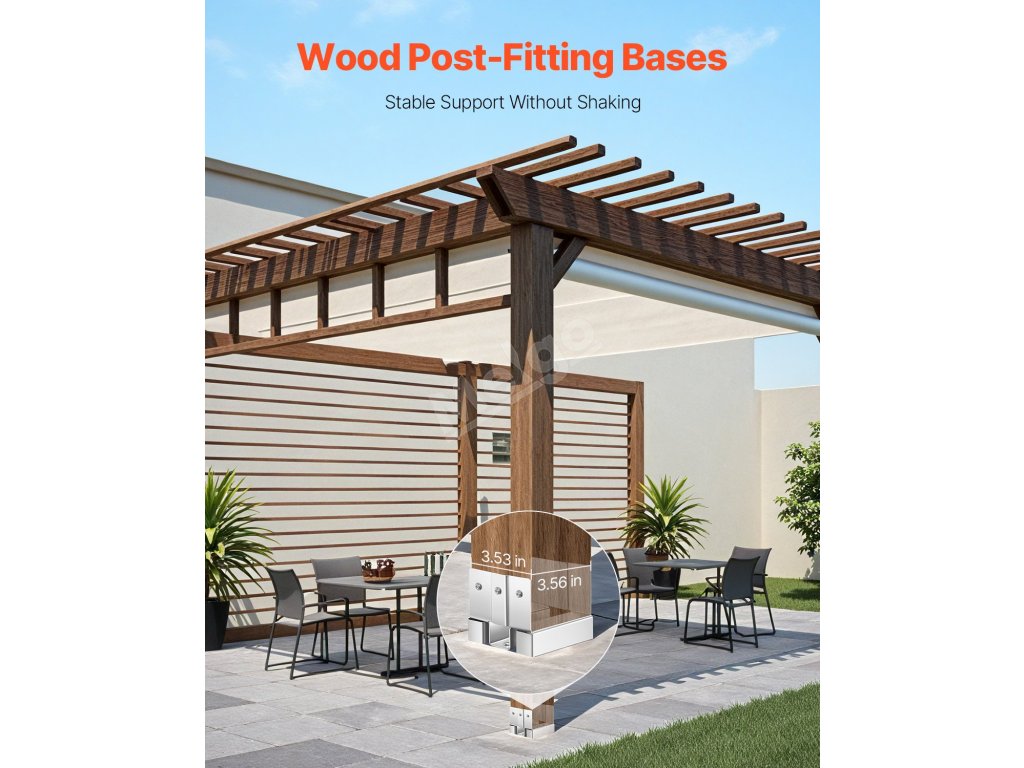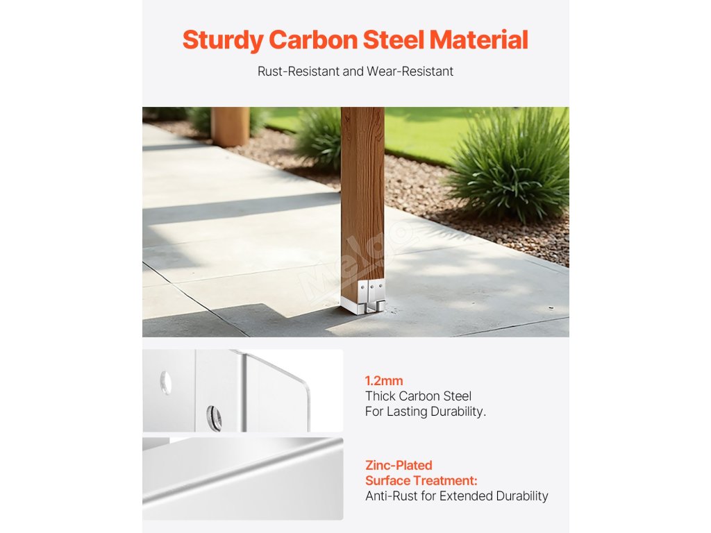 Základna sloupku je vyrobena z odolné uhlíkové oceli, která je odolná proti korozi a poskytuje stabilní oporu. Silný spodní kryt chrání dřevěné sloupky před přímým kontaktem se zemí a zabraňuje jejich rozpadu a deformaci. Díky širokému příslušenství se snadno instaluje na mnoho povrchů a je ideální pro zábradlí verand, pergol a sloupků.