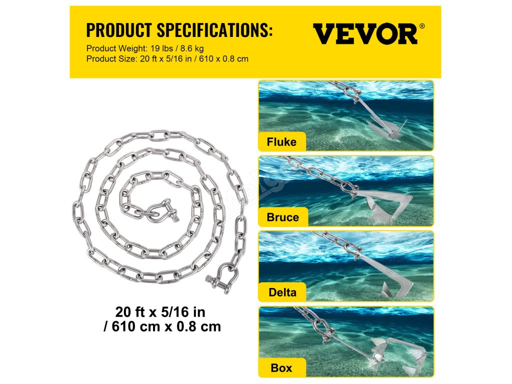 Tento kotevní řetěz je vyroben z vysoce pevných materiálů a odborně svařen, takže zůstává pevný a spolehlivý. Je odolný proti poškození a přetržení, takže vaše kotvení bude bezproblémové a bezpečné.