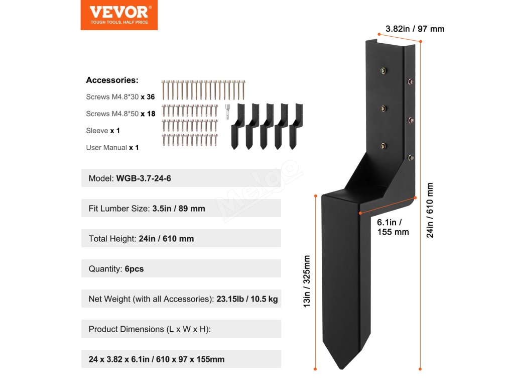 Kotvy na plotové sloupy 6 ks vnitřní průměr 3.5×3.5 inches ocel