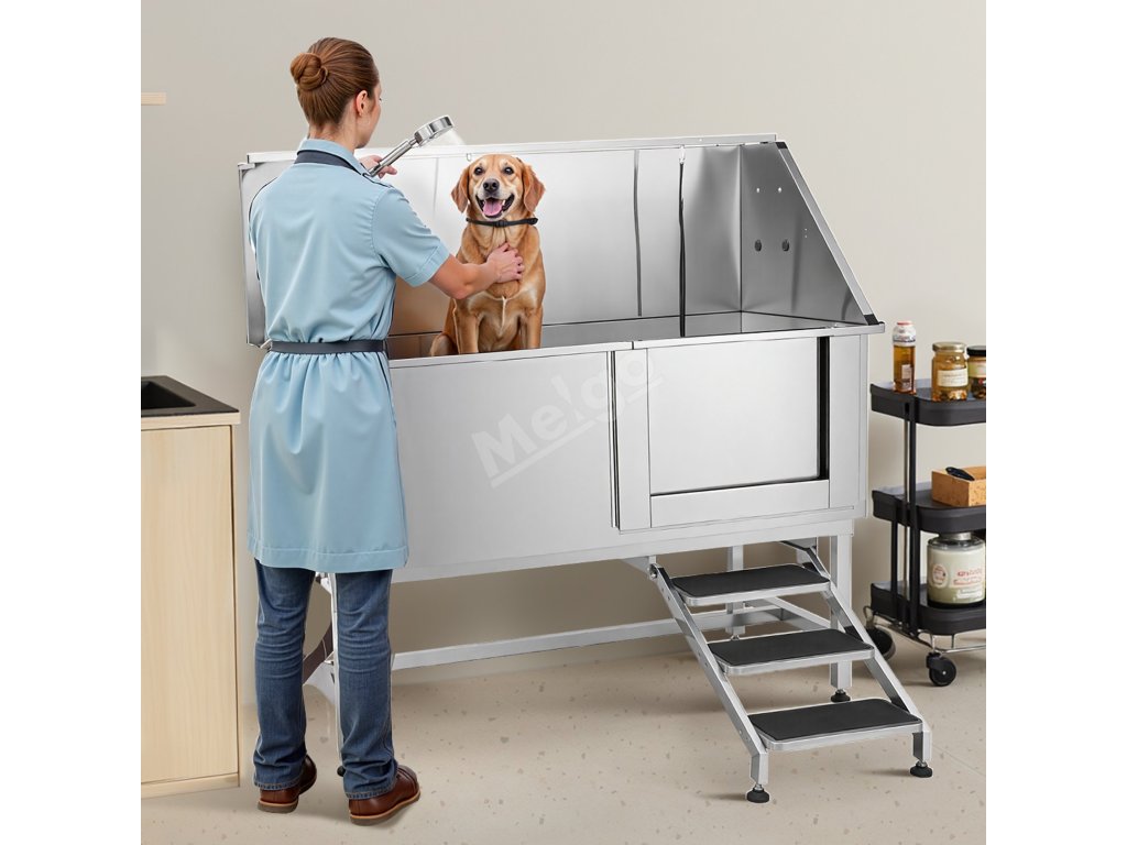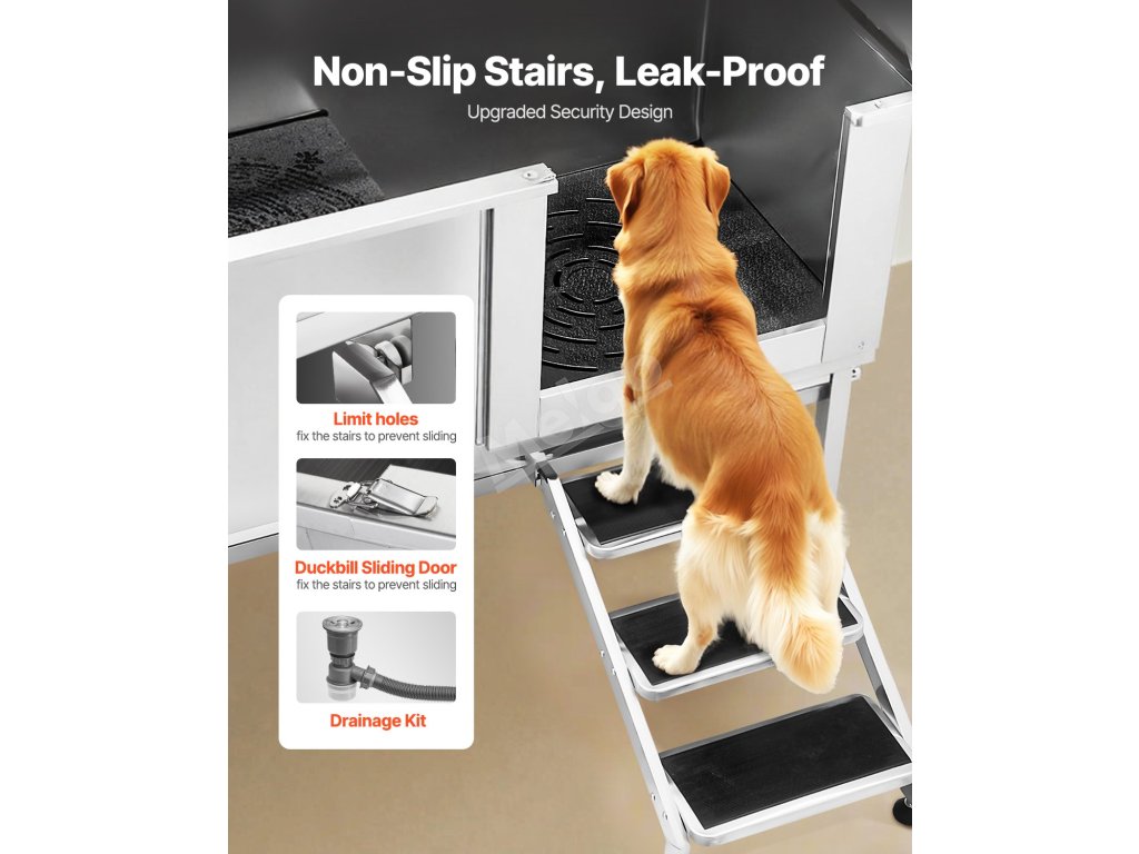 Koupací stanice pro psy nerez 157.48 cm se schůdky, baterií