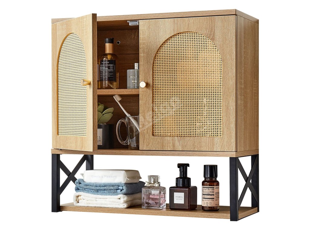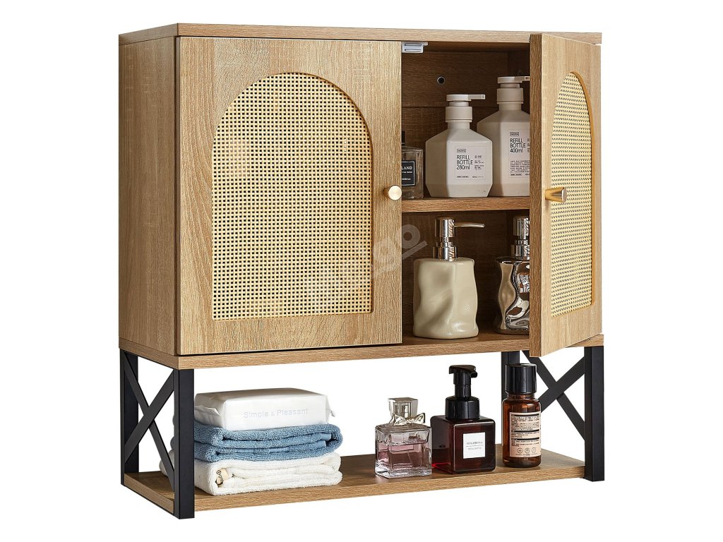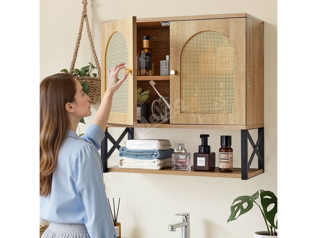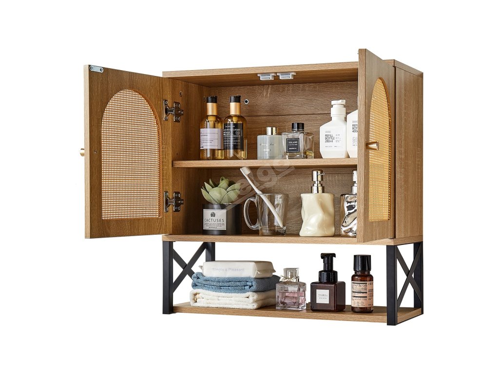 Tato koupelnová nástěnná skříňka je vyrobena z prvotřídní dřevotřísky, je robustní, odolná a atraktivní. Její prostorný interiér s tříúrovňovou nastavitelnou policí maximalizuje vertikální úložný prostor. Naše koupelnová nástěnná skříňka splňuje potřeby pro uložení různých toaletních potřeb a různých předmětů.