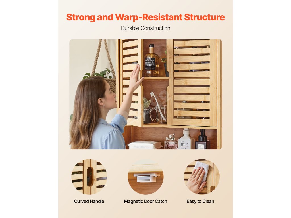 Naše závěsná koupelnová skříňka má pevný a odolný rám s hladkým magnetickým uzávěrem. Pohodlné úchyty a hladké hrany usnadňují otevírání a zabraňují nárazům. Police o tloušťce 0,6 palce zajišťují silnou nosnost a zůstávají dlouhodobě robustní a atraktivní.