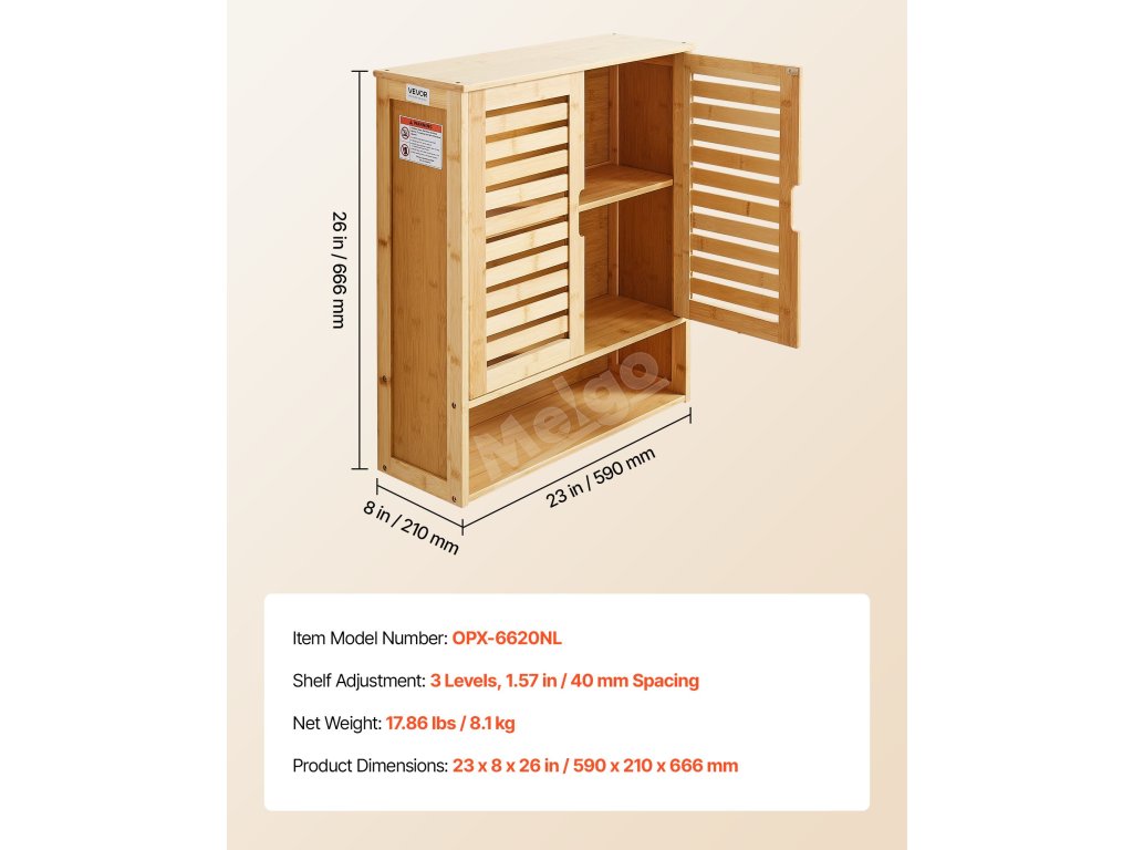 Tato koupelnová nástěnná skříňka má prvotřídní konstrukci, je robustní, odolná a atraktivní. Její prostorný interiér s tříúrovňovou nastavitelnou policí maximalizuje vertikální úložný prostor. Naše koupelnová nástěnná skříňka splňuje potřeby pro uložení různých toaletních potřeb a různých předmětů.